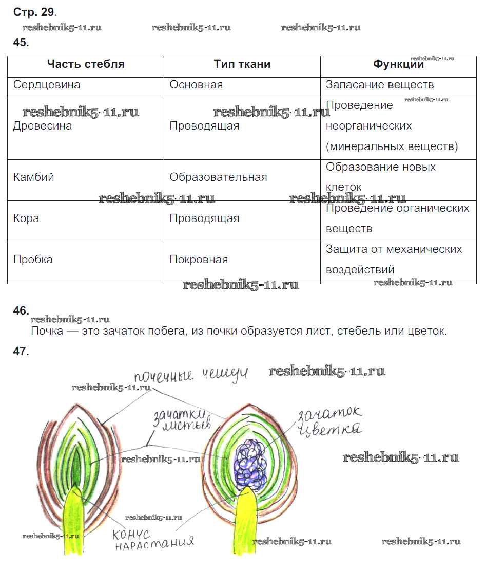 Готовая домашняя работа с ответами по Биологии за 6 класс Сонин Рабочая тетрадь Живой организм Дрофа 2017 ФГОС - Страницы 29