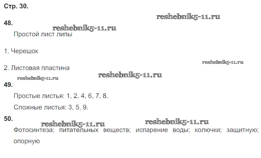 Готовая домашняя работа с ответами по Биологии за 6 класс Сонин Рабочая тетрадь Живой организм Дрофа 2017 ФГОС - Страницы 30