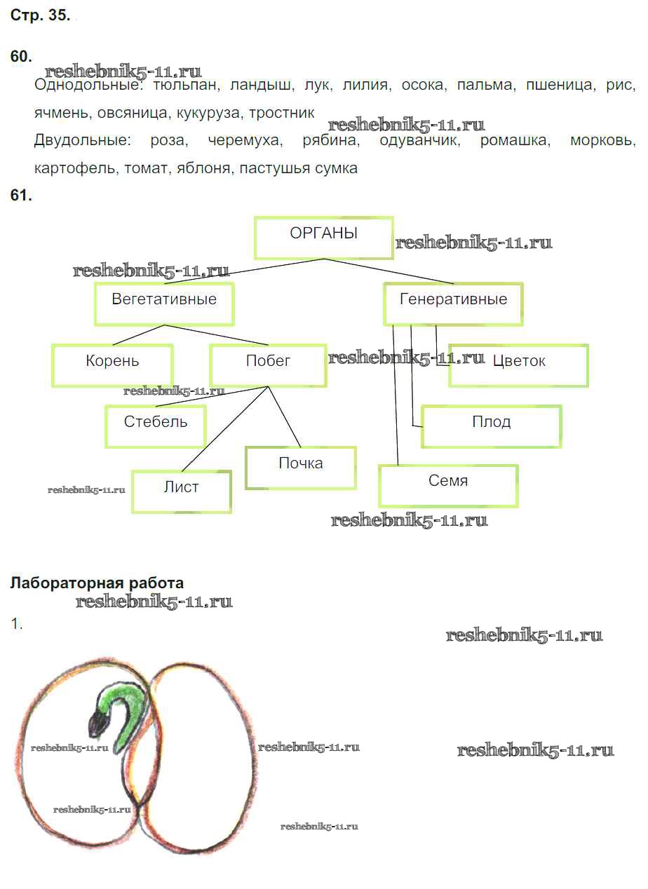 Готовая домашняя работа с ответами по Биологии за 6 класс Сонин Рабочая тетрадь Живой организм Дрофа 2017 ФГОС - Страницы 35