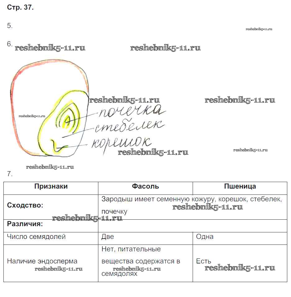 Готовая домашняя работа с ответами по Биологии за 6 класс Сонин Рабочая тетрадь Живой организм Дрофа 2017 ФГОС - Страницы 37
