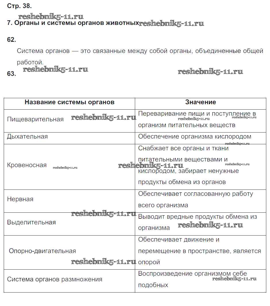 Готовая домашняя работа с ответами по Биологии за 6 класс Сонин Рабочая тетрадь Живой организм Дрофа 2017 ФГОС - Страницы 38
