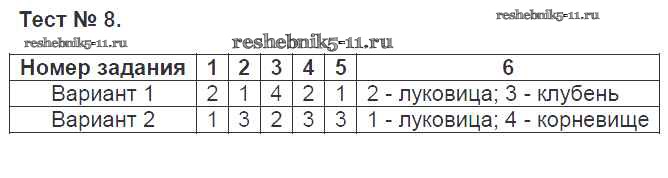 Готовая домашняя работа с ответами по Биологии за 6 класс Богданов Контрольно-измерительные материалы (КИМ) ВАКО 2017 ФГОС - Тесты 8