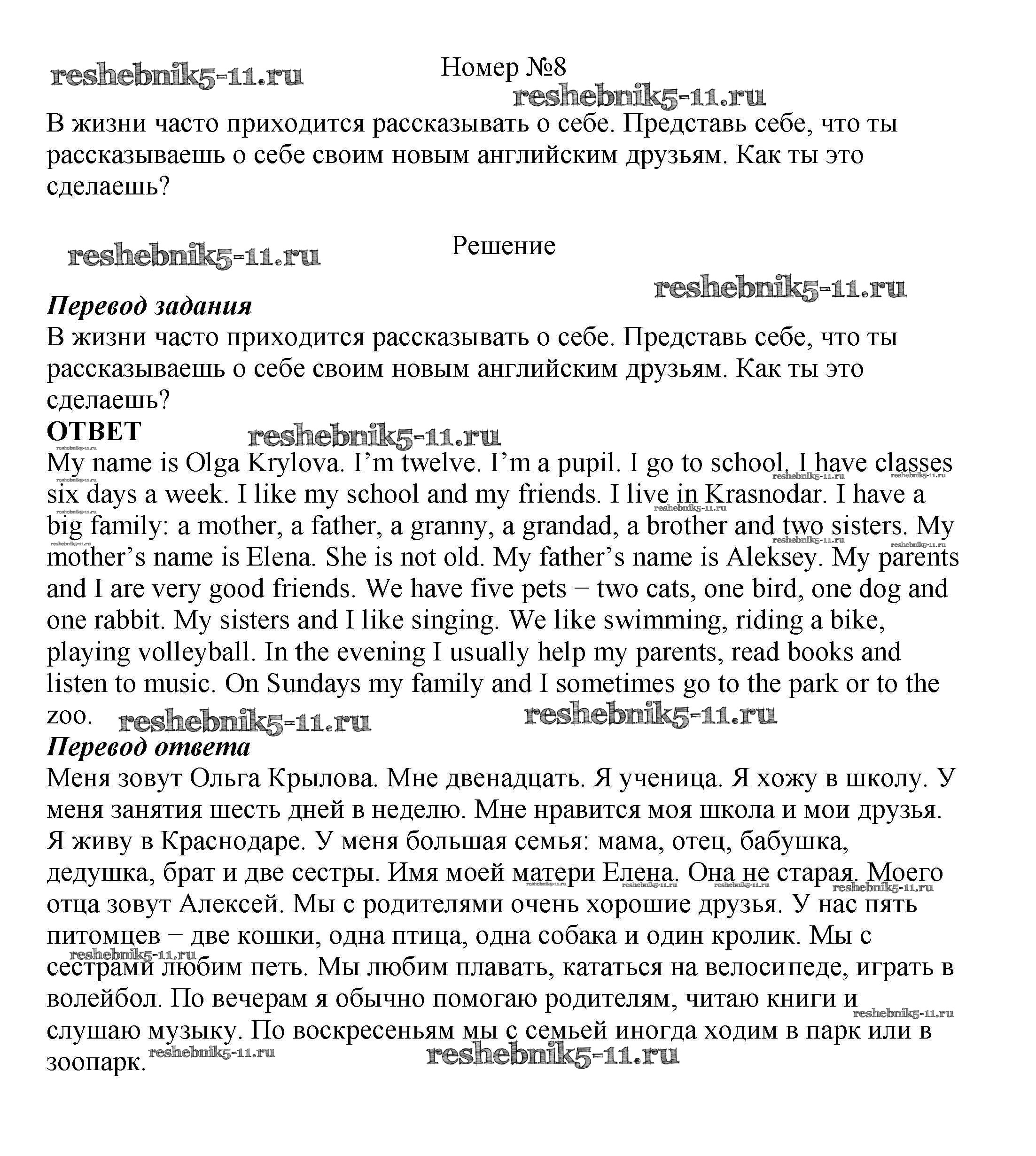 Готовая домашняя работа с ответами по Английскому языку за 6 класс Афанасьева, Михеева Учебник Новый курс Дрофа 2017 ФГОС - Step 5 8