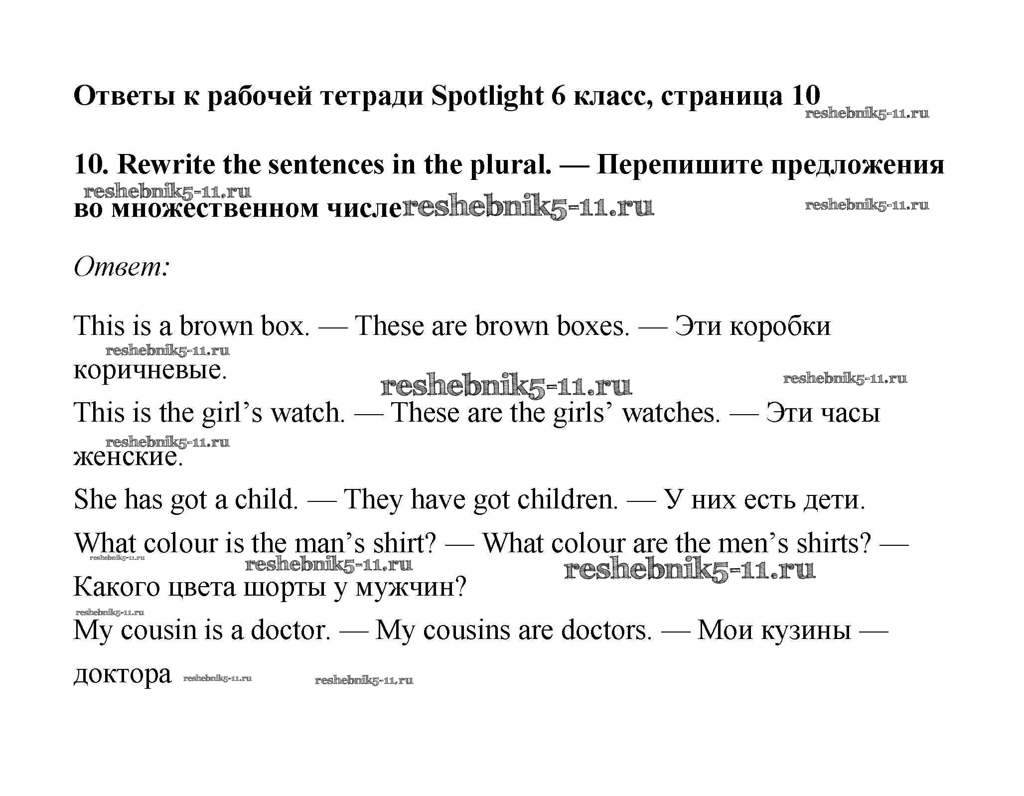 Готовая домашняя работа с ответами по Английскому языку за 6 класс Эванс, Дули, Подоляко, Ваулина Рабочая тетрадь Spotlight Просвещение 2011 - Страницы 10
