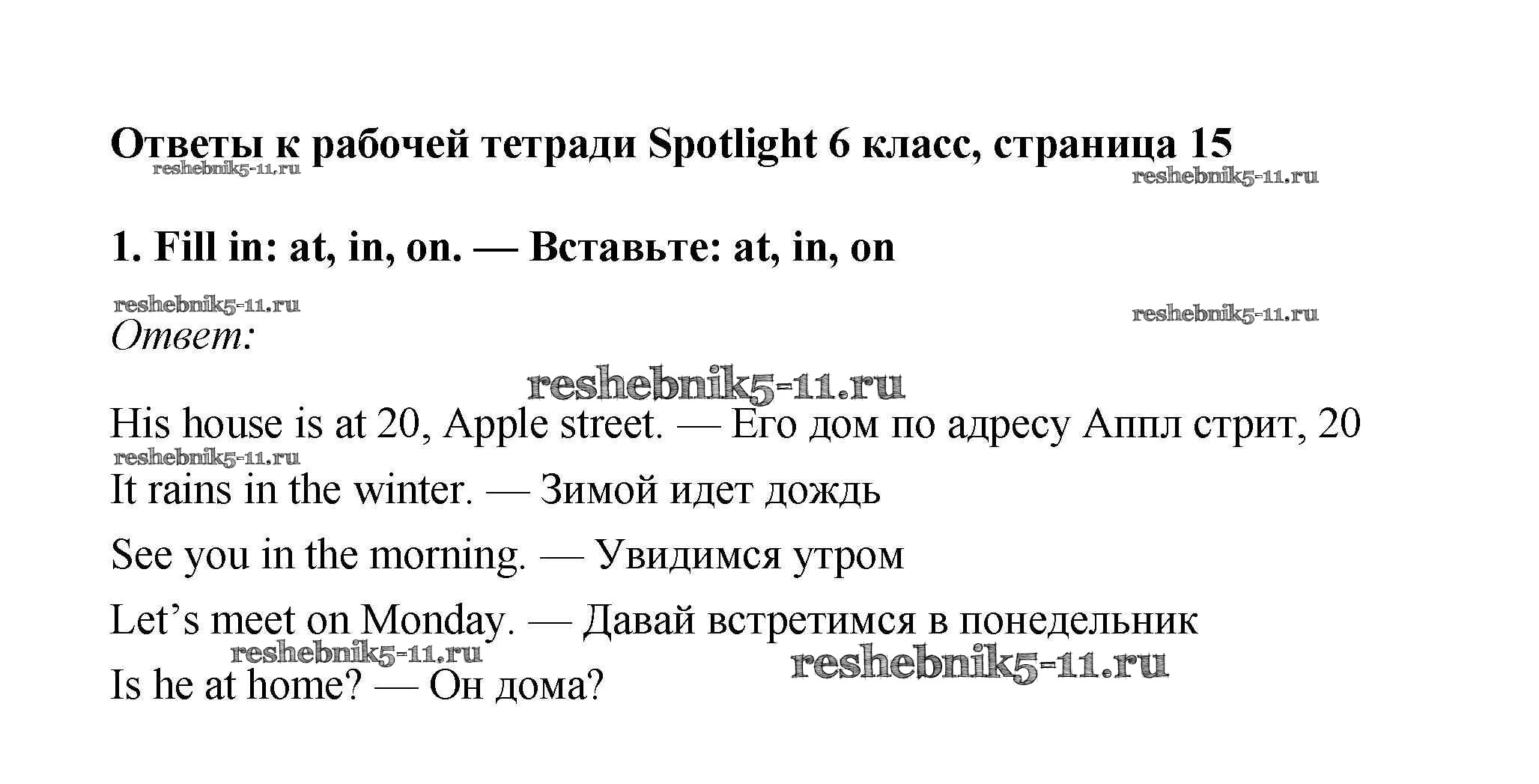 Готовая домашняя работа с ответами по Английскому языку за 6 класс Эванс, Дули, Подоляко, Ваулина Рабочая тетрадь Spotlight Просвещение 2011 - Страницы 15