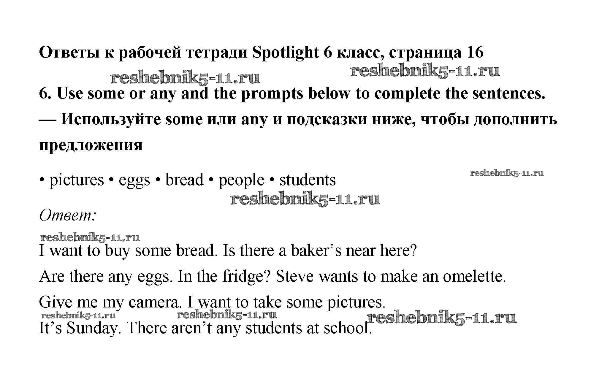 Готовая домашняя работа с ответами по Английскому языку за 6 класс Эванс, Дули, Подоляко, Ваулина Рабочая тетрадь Spotlight Просвещение 2011 - Страницы 16