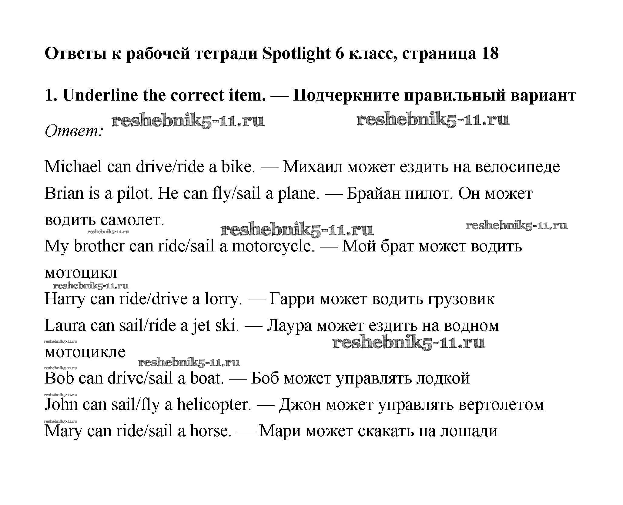 Готовая домашняя работа с ответами по Английскому языку за 6 класс Эванс, Дули, Подоляко, Ваулина Рабочая тетрадь Spotlight Просвещение 2011 - Страницы 18