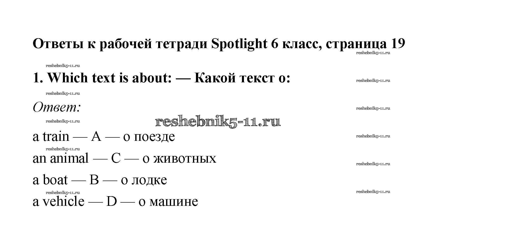 Готовая домашняя работа с ответами по Английскому языку за 6 класс Эванс, Дули, Подоляко, Ваулина Рабочая тетрадь Spotlight Просвещение 2011 - Страницы 19