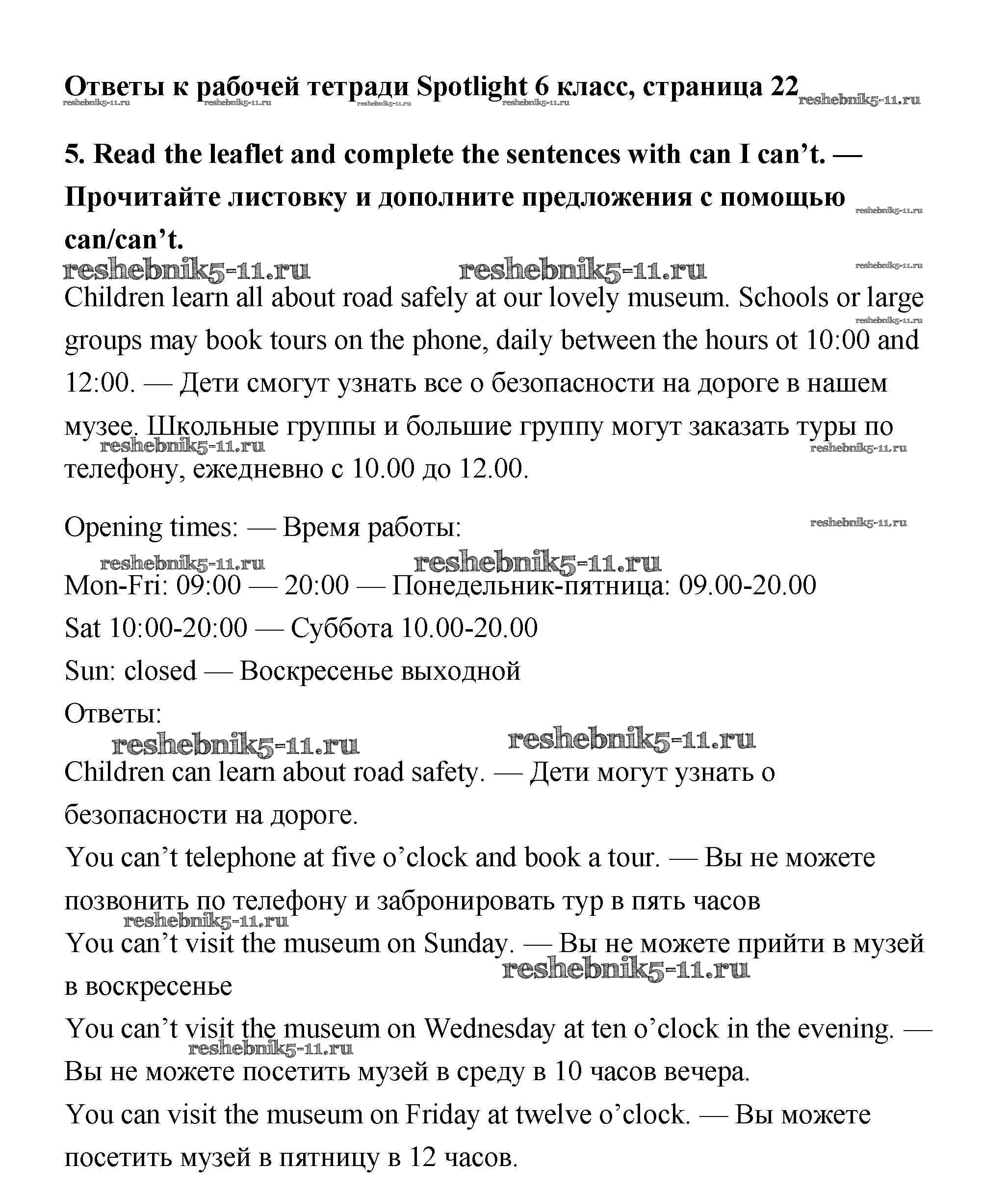 Готовая домашняя работа с ответами по Английскому языку за 6 класс Эванс, Дули, Подоляко, Ваулина Рабочая тетрадь Spotlight Просвещение 2011 - Страницы 22