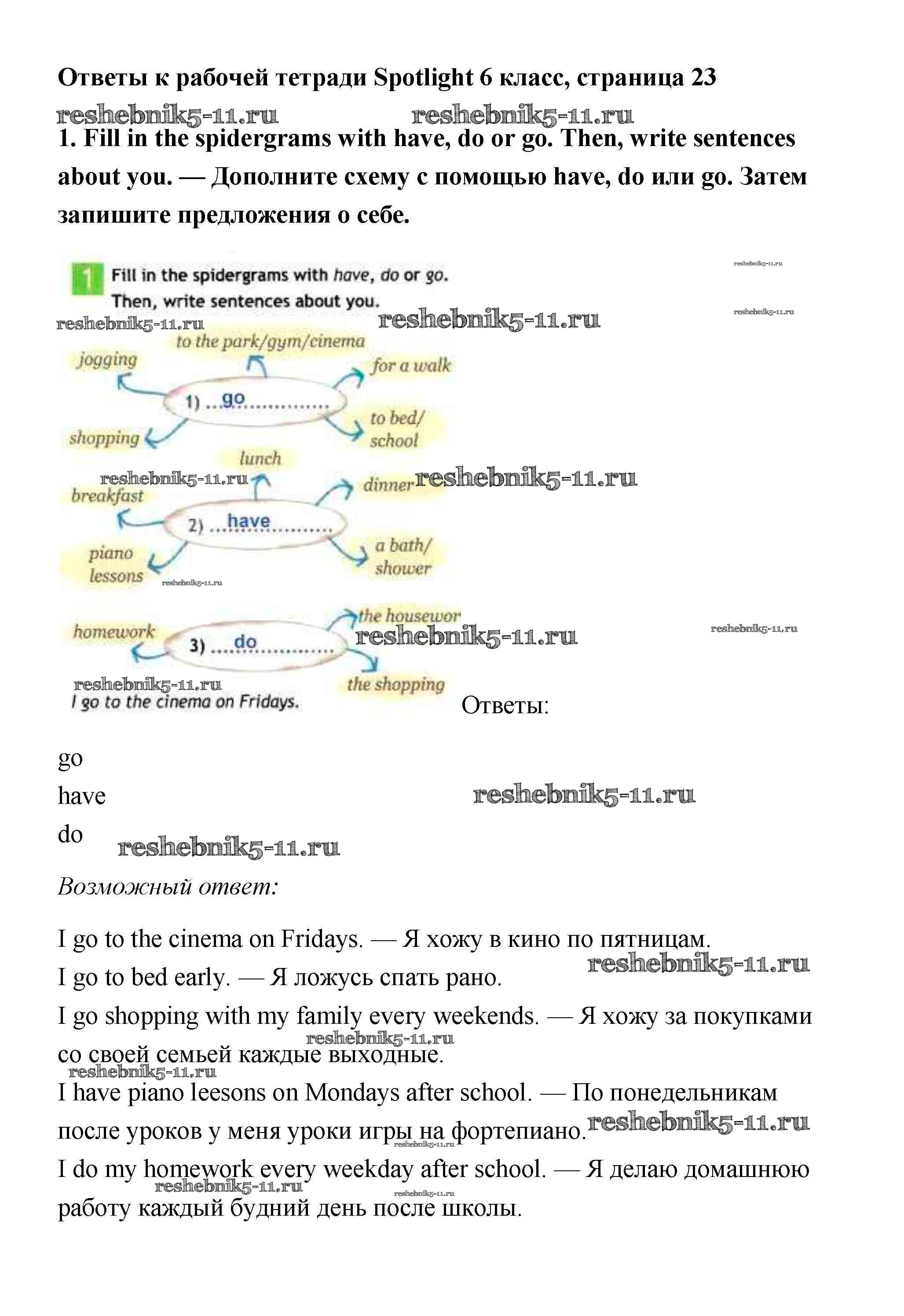 Готовая домашняя работа с ответами по Английскому языку за 6 класс Эванс, Дули, Подоляко, Ваулина Рабочая тетрадь Spotlight Просвещение 2011 - Страницы 23
