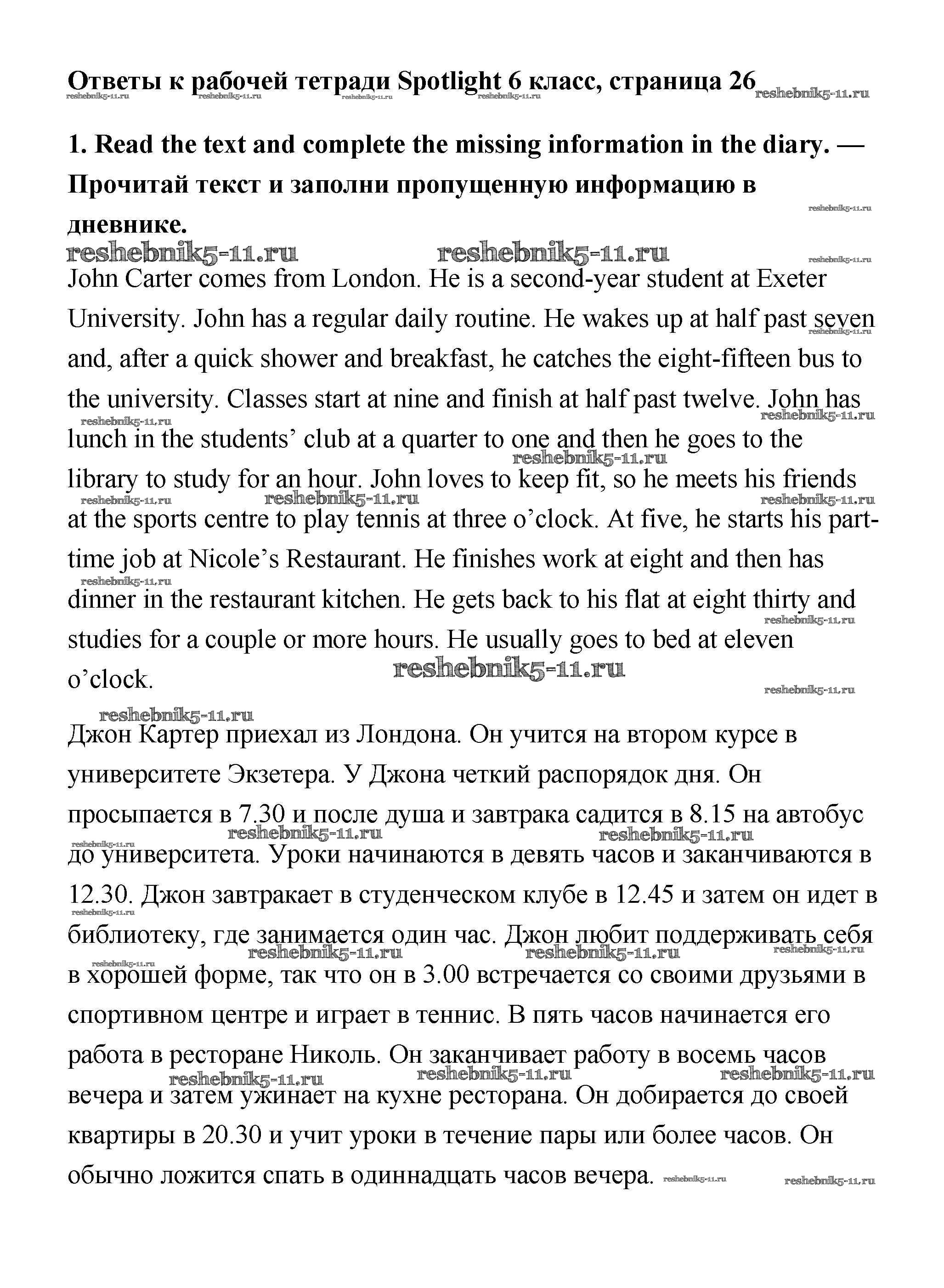 Готовая домашняя работа с ответами по Английскому языку за 6 класс Эванс, Дули, Подоляко, Ваулина Рабочая тетрадь Spotlight Просвещение 2011 - Страницы 26