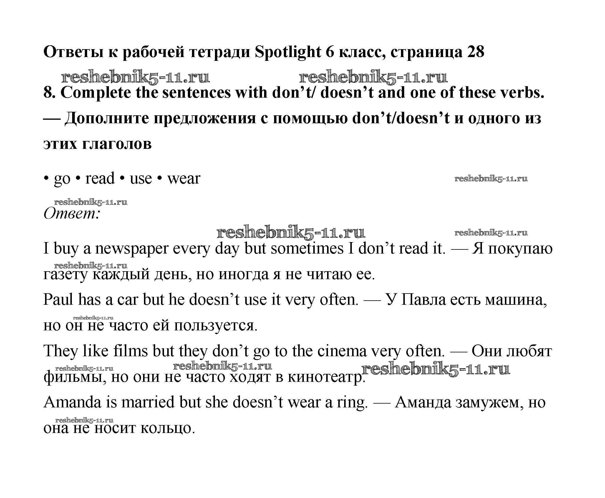 Готовая домашняя работа с ответами по Английскому языку за 6 класс Эванс, Дули, Подоляко, Ваулина Рабочая тетрадь Spotlight Просвещение 2011 - Страницы 28