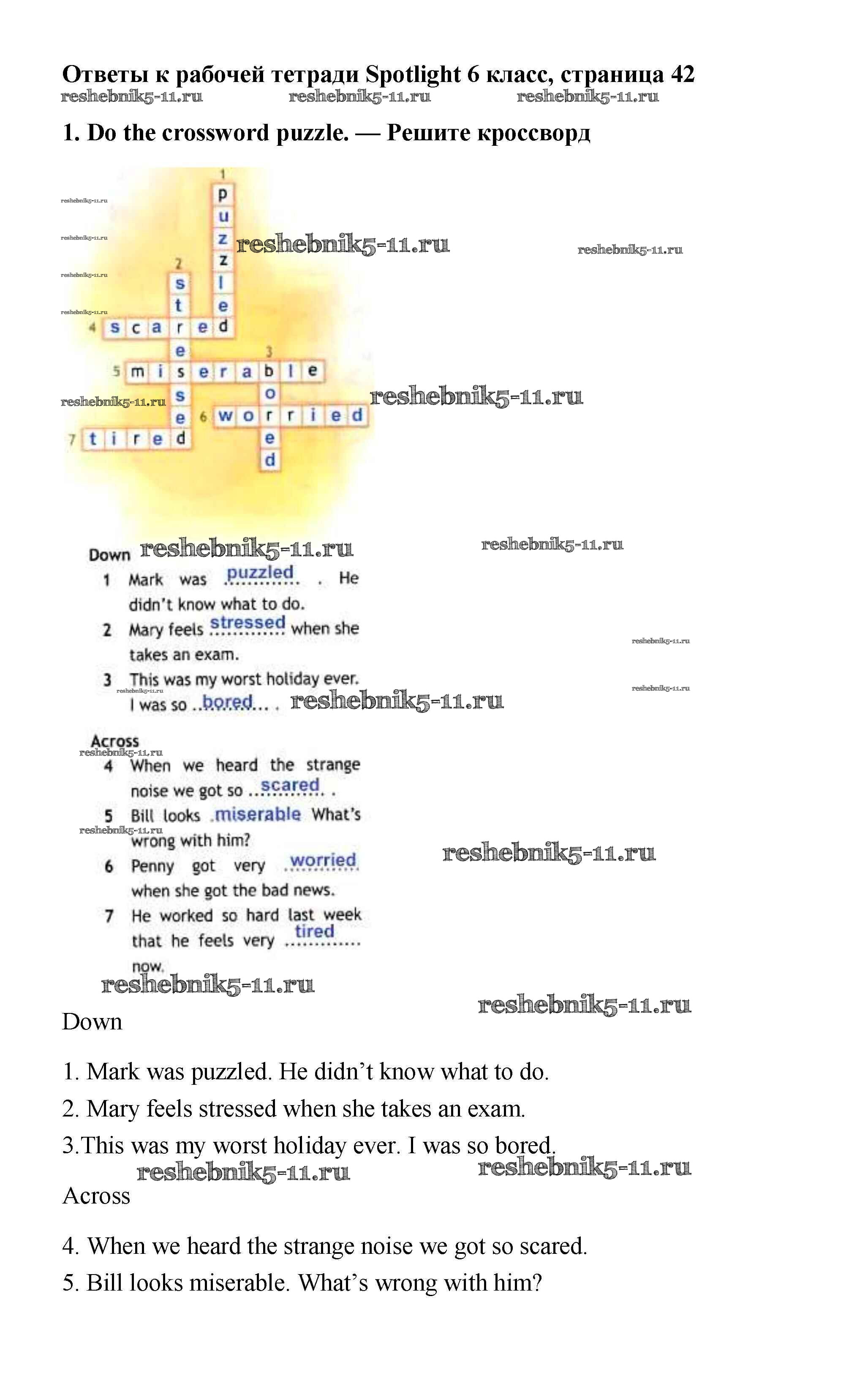 Готовая домашняя работа с ответами по Английскому языку за 6 класс Эванс, Дули, Подоляко, Ваулина Рабочая тетрадь Spotlight Просвещение 2011 - Страницы 42