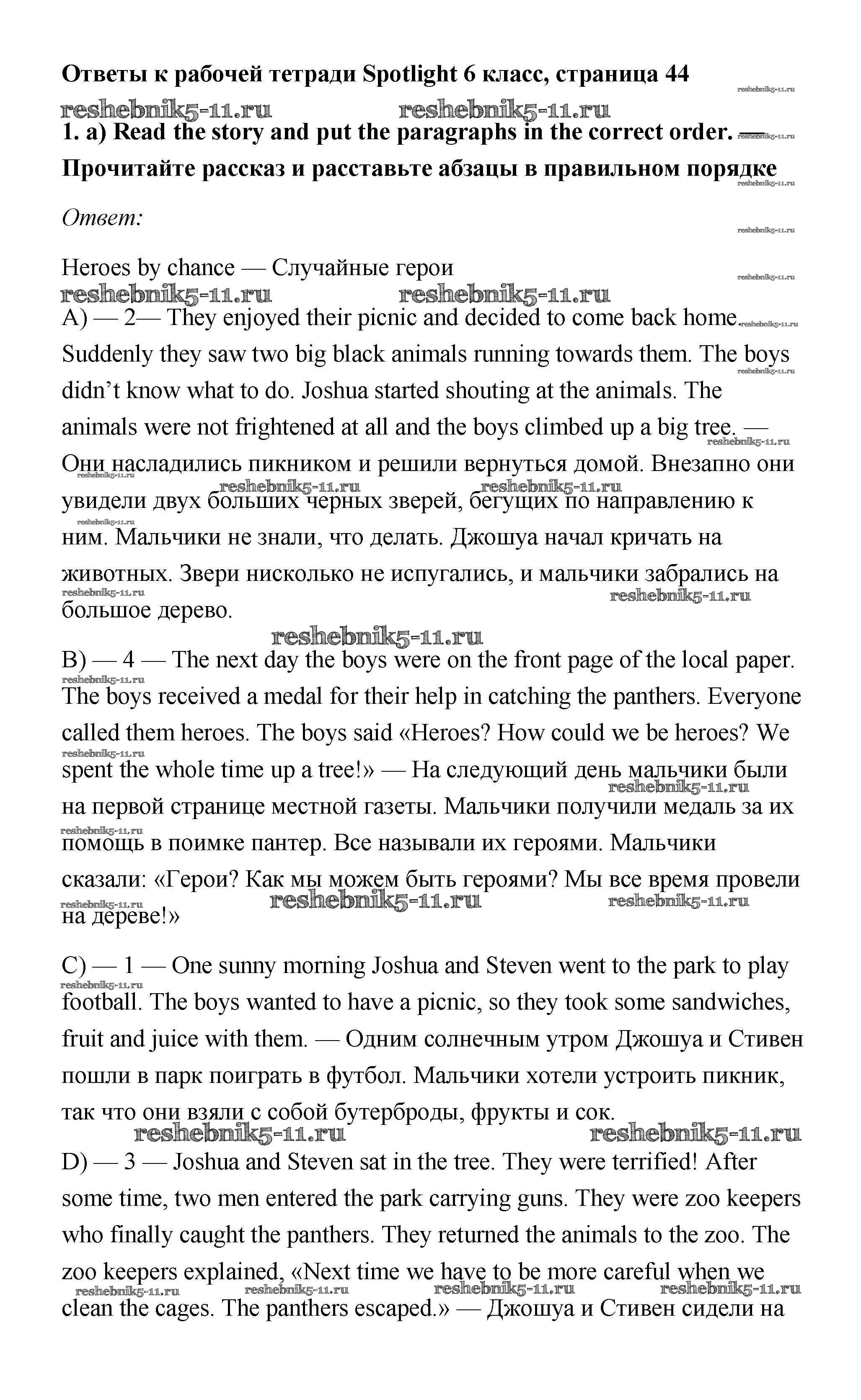 Готовая домашняя работа с ответами по Английскому языку за 6 класс Эванс, Дули, Подоляко, Ваулина Рабочая тетрадь Spotlight Просвещение 2011 - Страницы 44