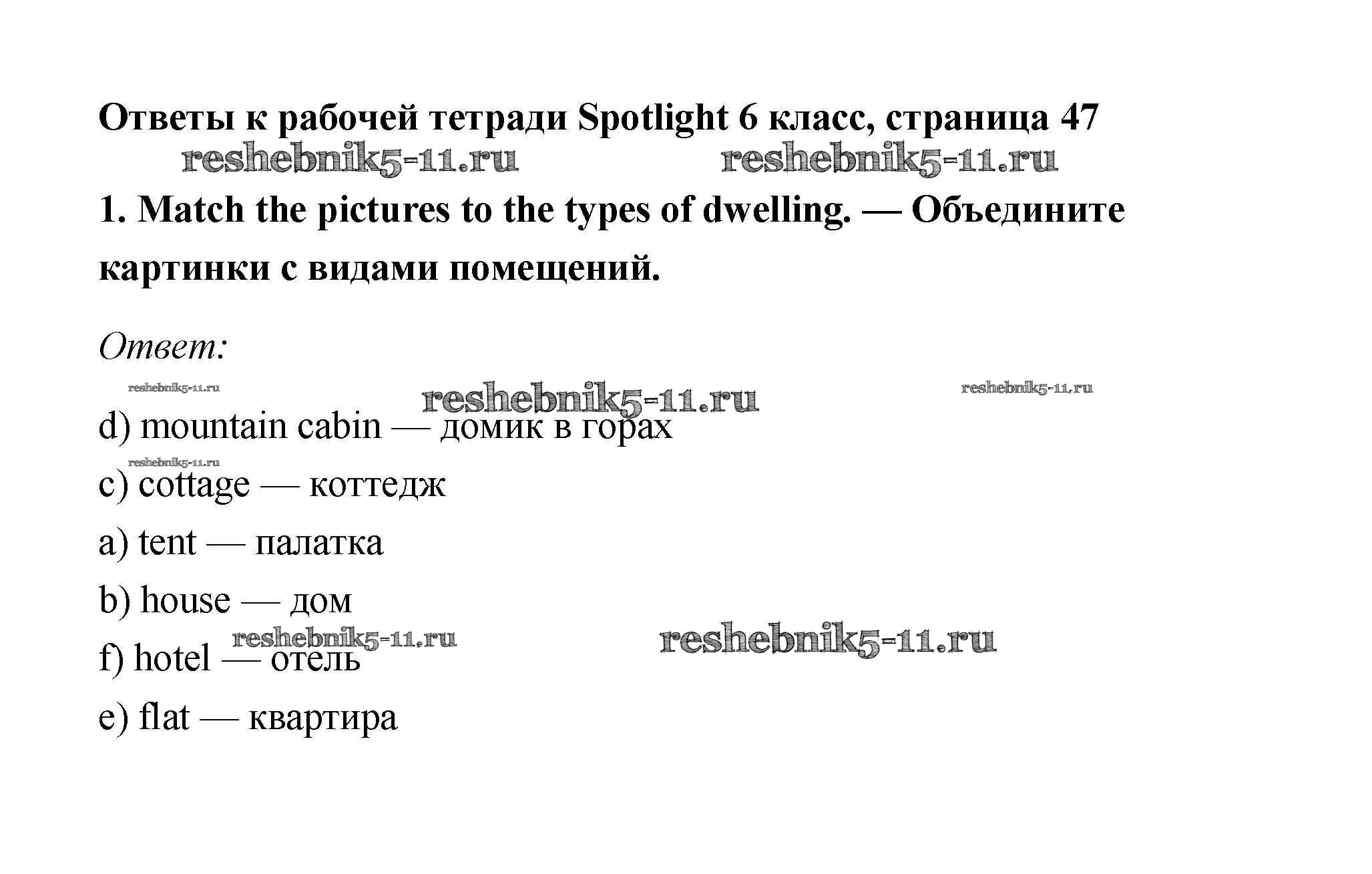 Готовая домашняя работа с ответами по Английскому языку за 6 класс Эванс, Дули, Подоляко, Ваулина Рабочая тетрадь Spotlight Просвещение 2011 - Страницы 47