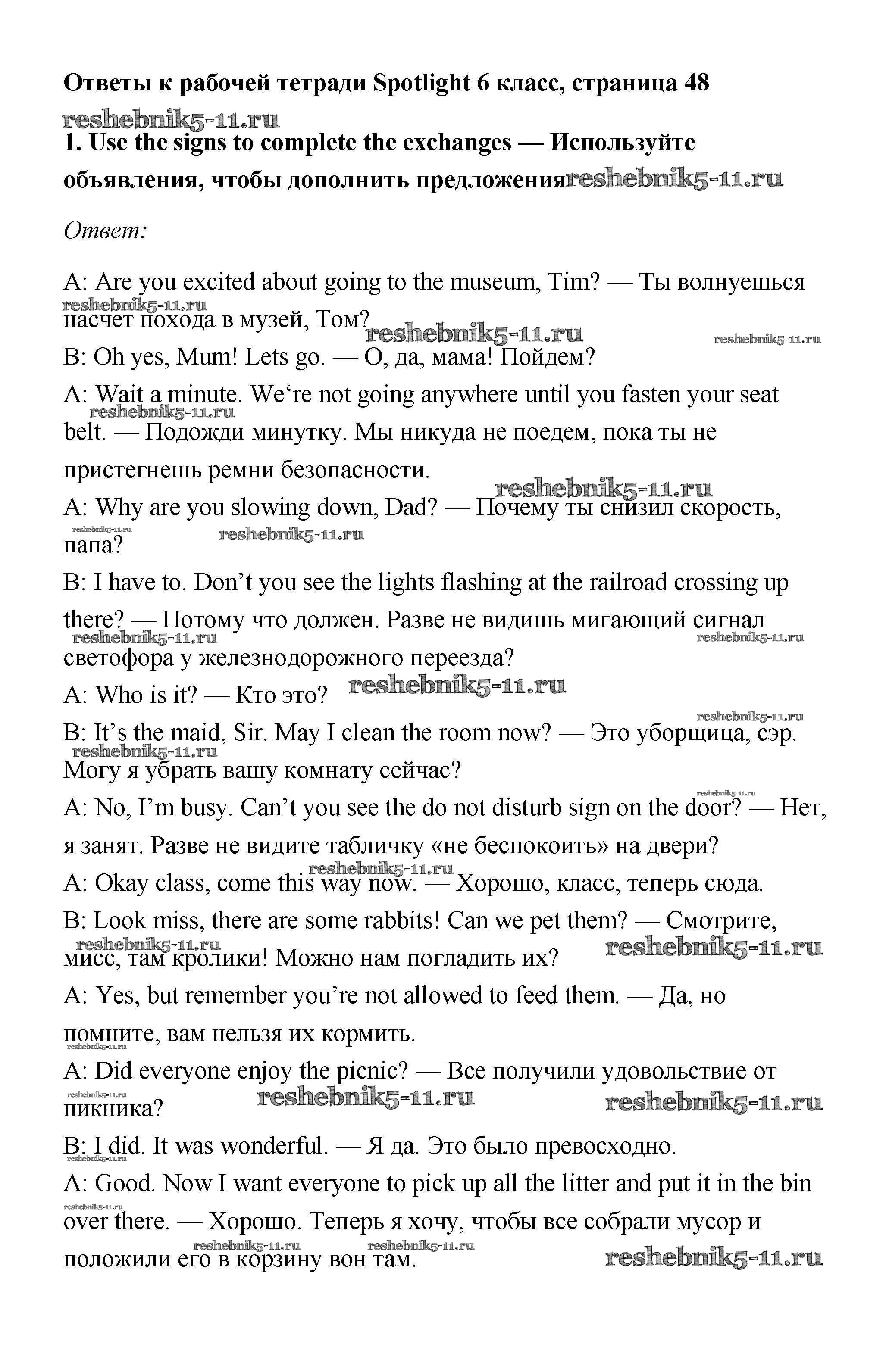 Готовая домашняя работа с ответами по Английскому языку за 6 класс Эванс, Дули, Подоляко, Ваулина Рабочая тетрадь Spotlight Просвещение 2011 - Страницы 48