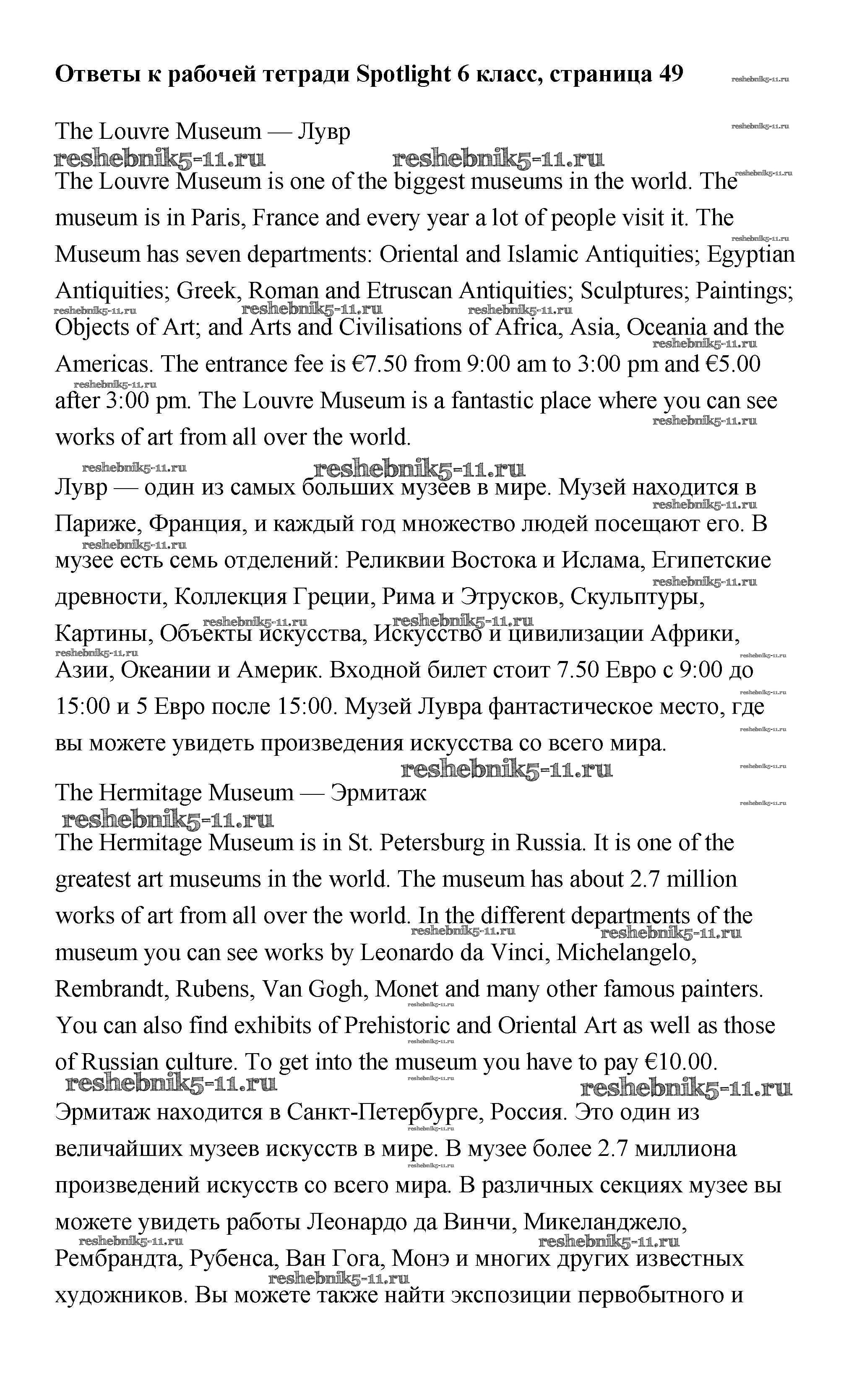 Готовая домашняя работа с ответами по Английскому языку за 6 класс Эванс, Дули, Подоляко, Ваулина Рабочая тетрадь Spotlight Просвещение 2011 - Страницы 49