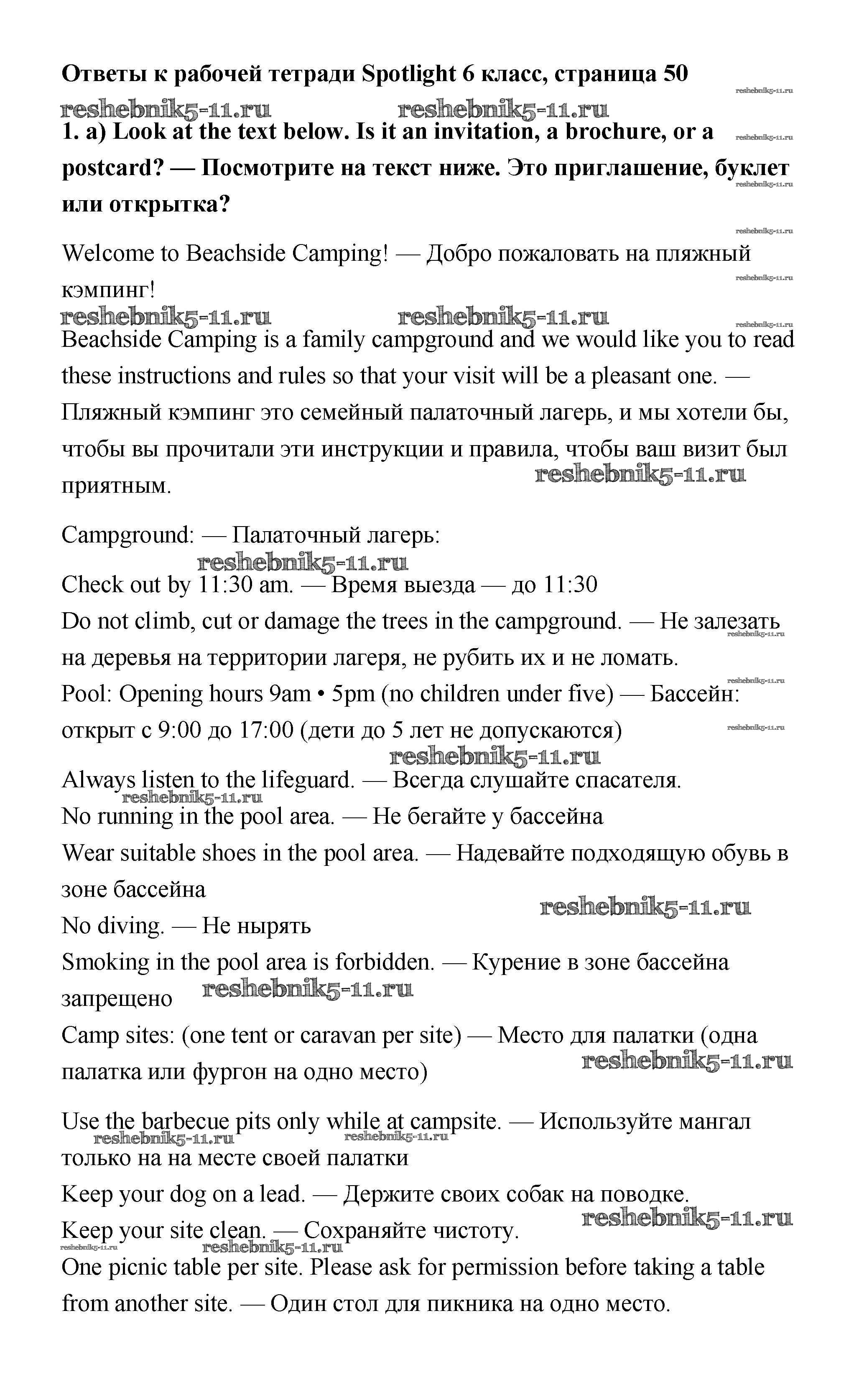 Готовая домашняя работа с ответами по Английскому языку за 6 класс Эванс, Дули, Подоляко, Ваулина Рабочая тетрадь Spotlight Просвещение 2011 - Страницы 50