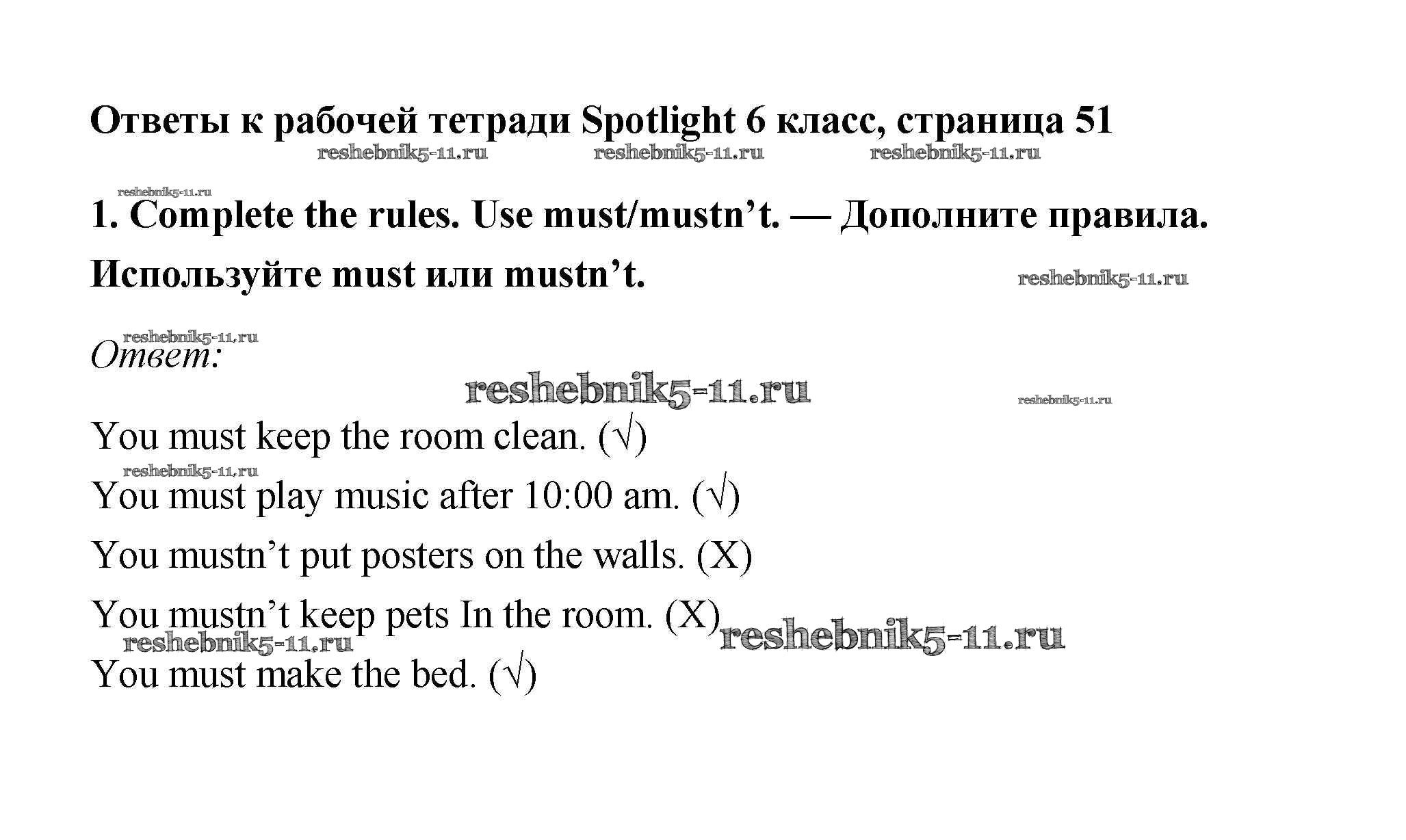Готовая домашняя работа с ответами по Английскому языку за 6 класс Эванс, Дули, Подоляко, Ваулина Рабочая тетрадь Spotlight Просвещение 2011 - Страницы 51