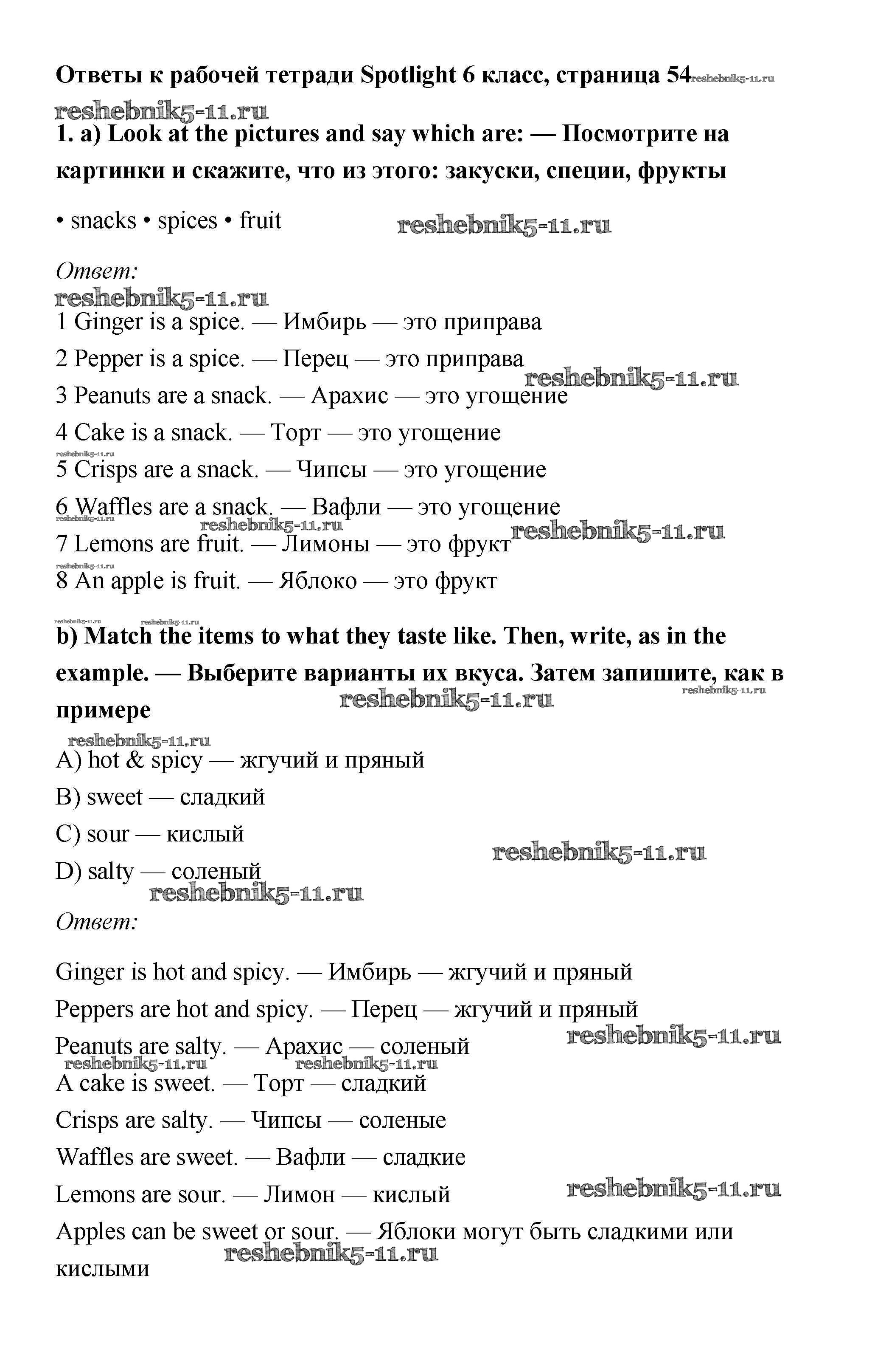 Готовая домашняя работа с ответами по Английскому языку за 6 класс Эванс, Дули, Подоляко, Ваулина Рабочая тетрадь Spotlight Просвещение 2011 - Страницы 54