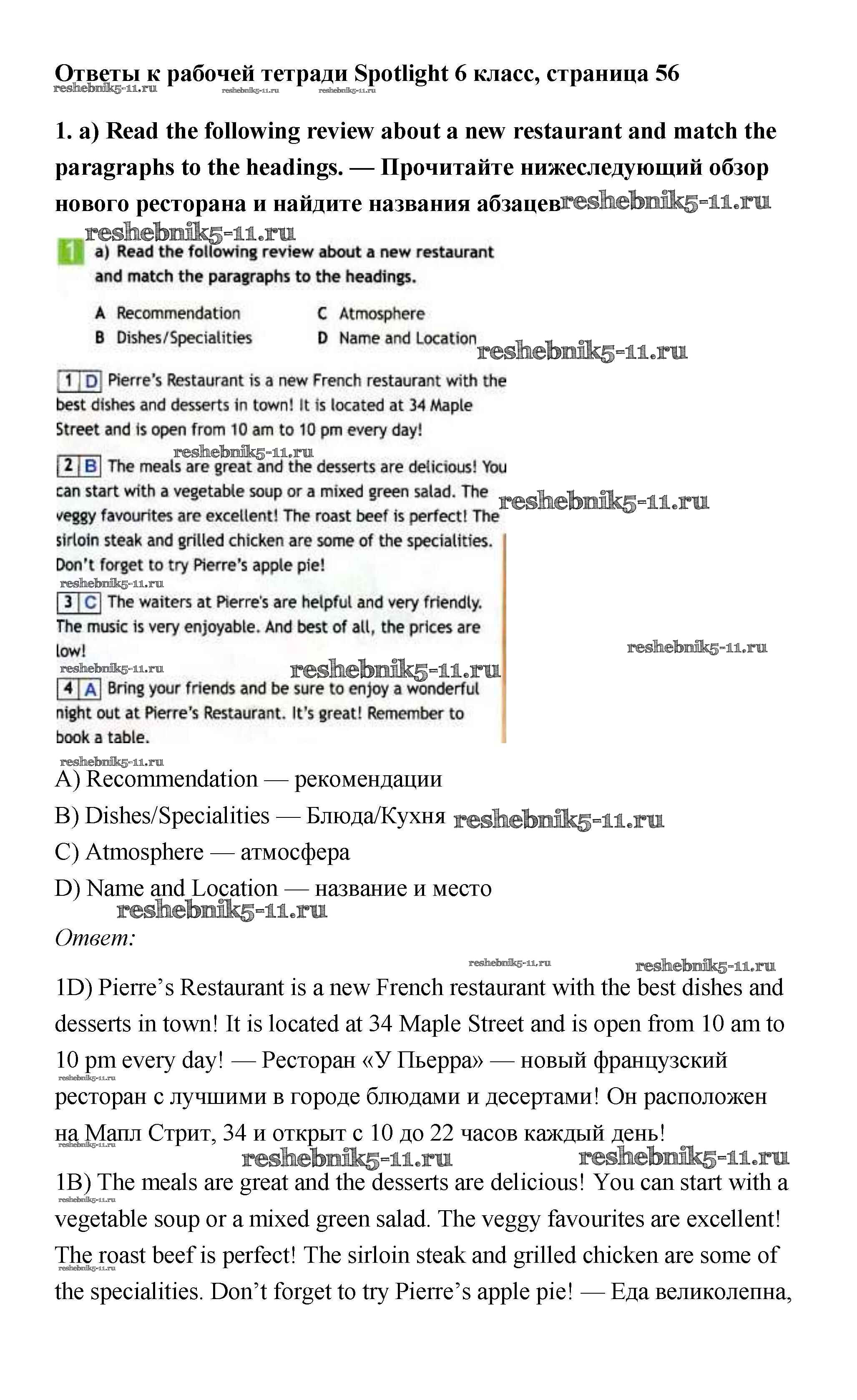 Готовая домашняя работа с ответами по Английскому языку за 6 класс Эванс, Дули, Подоляко, Ваулина Рабочая тетрадь Spotlight Просвещение 2011 - Страницы 56