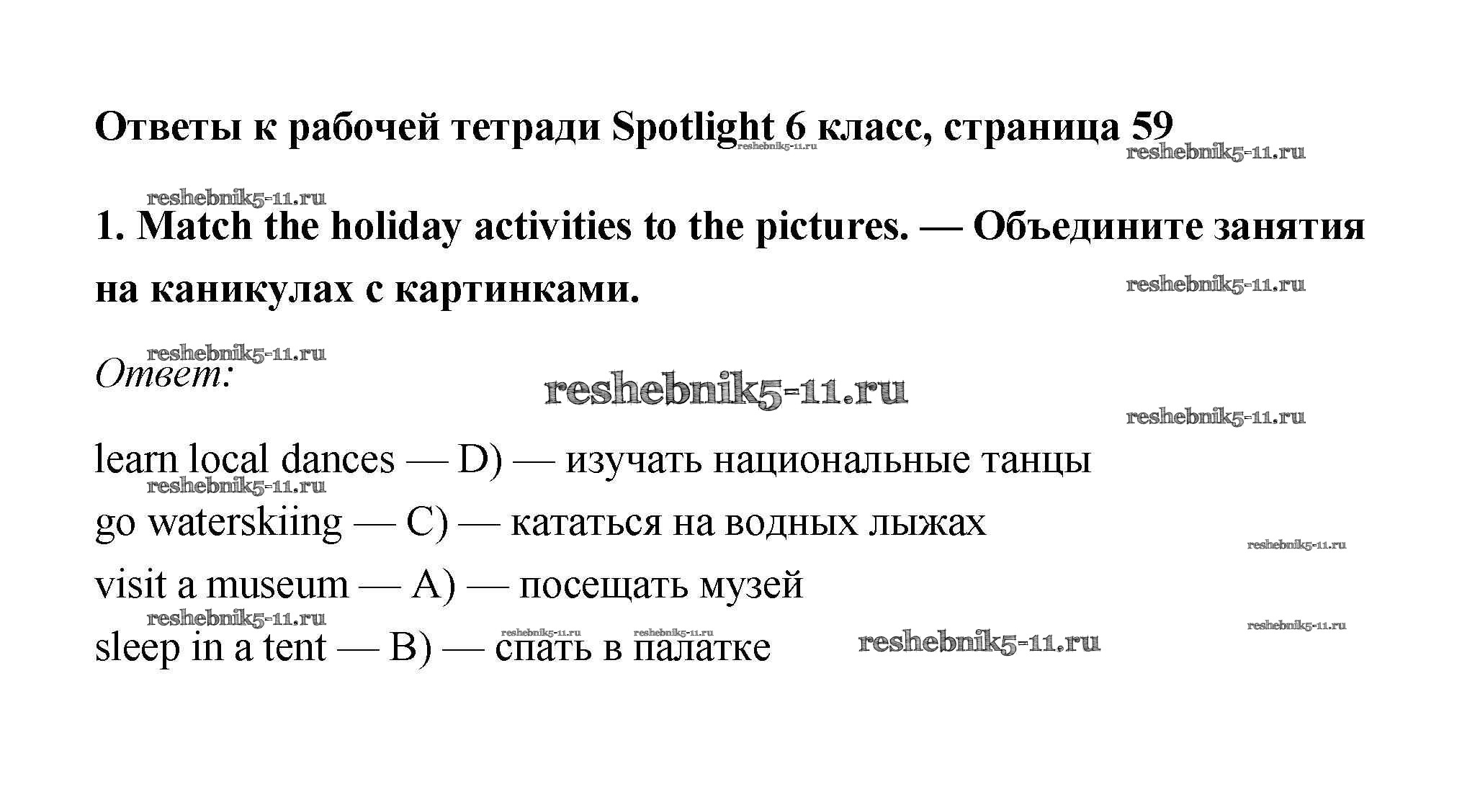 Готовая домашняя работа с ответами по Английскому языку за 6 класс Эванс, Дули, Подоляко, Ваулина Рабочая тетрадь Spotlight Просвещение 2011 - Страницы 59