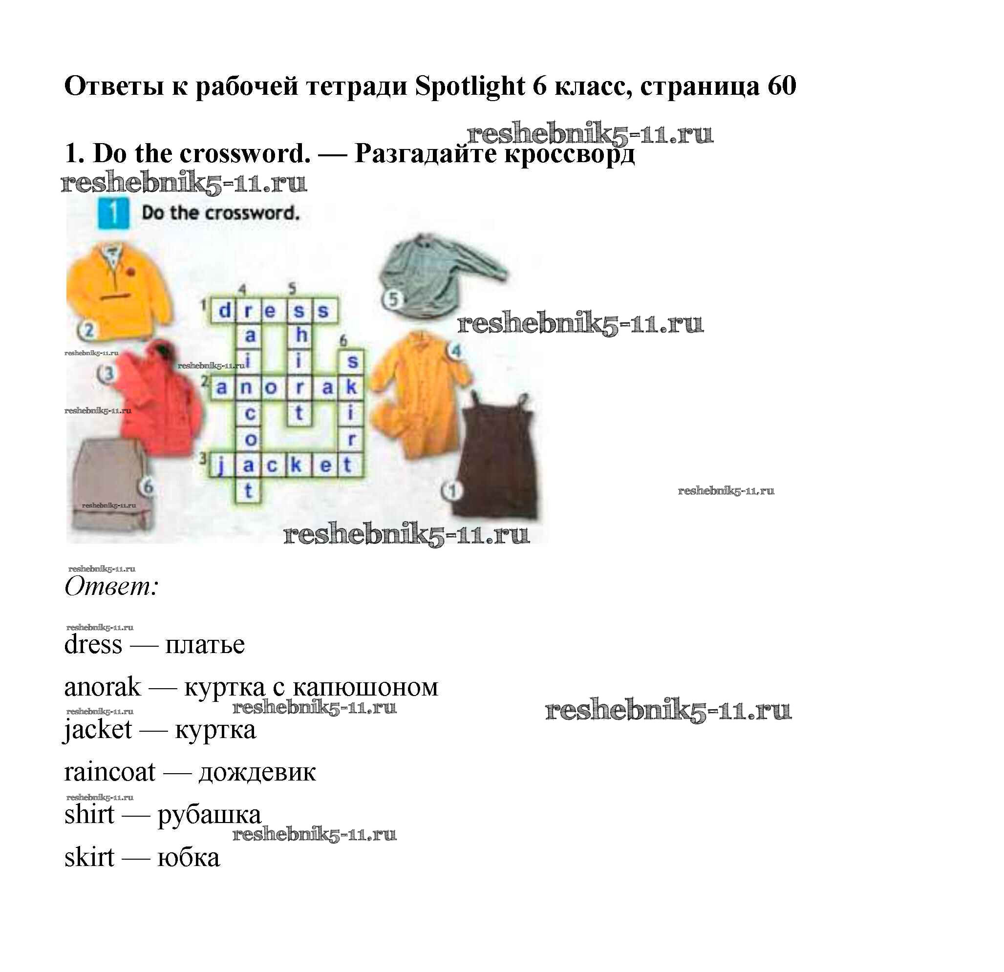 Готовая домашняя работа с ответами по Английскому языку за 6 класс Эванс, Дули, Подоляко, Ваулина Рабочая тетрадь Spotlight Просвещение 2011 - Страницы 60