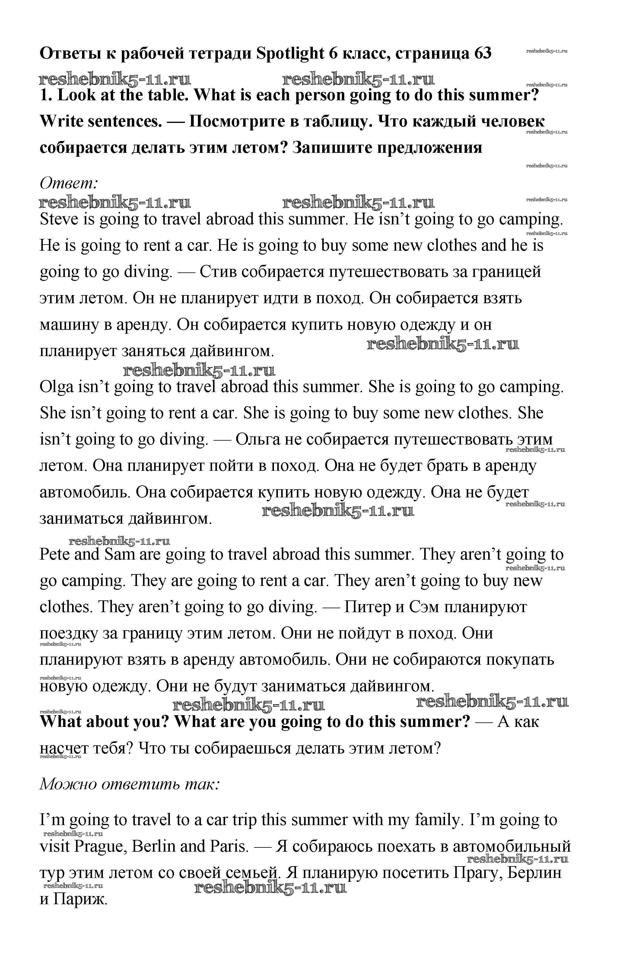 Готовая домашняя работа с ответами по Английскому языку за 6 класс Эванс, Дули, Подоляко, Ваулина Рабочая тетрадь Spotlight Просвещение 2011 - Страницы 63