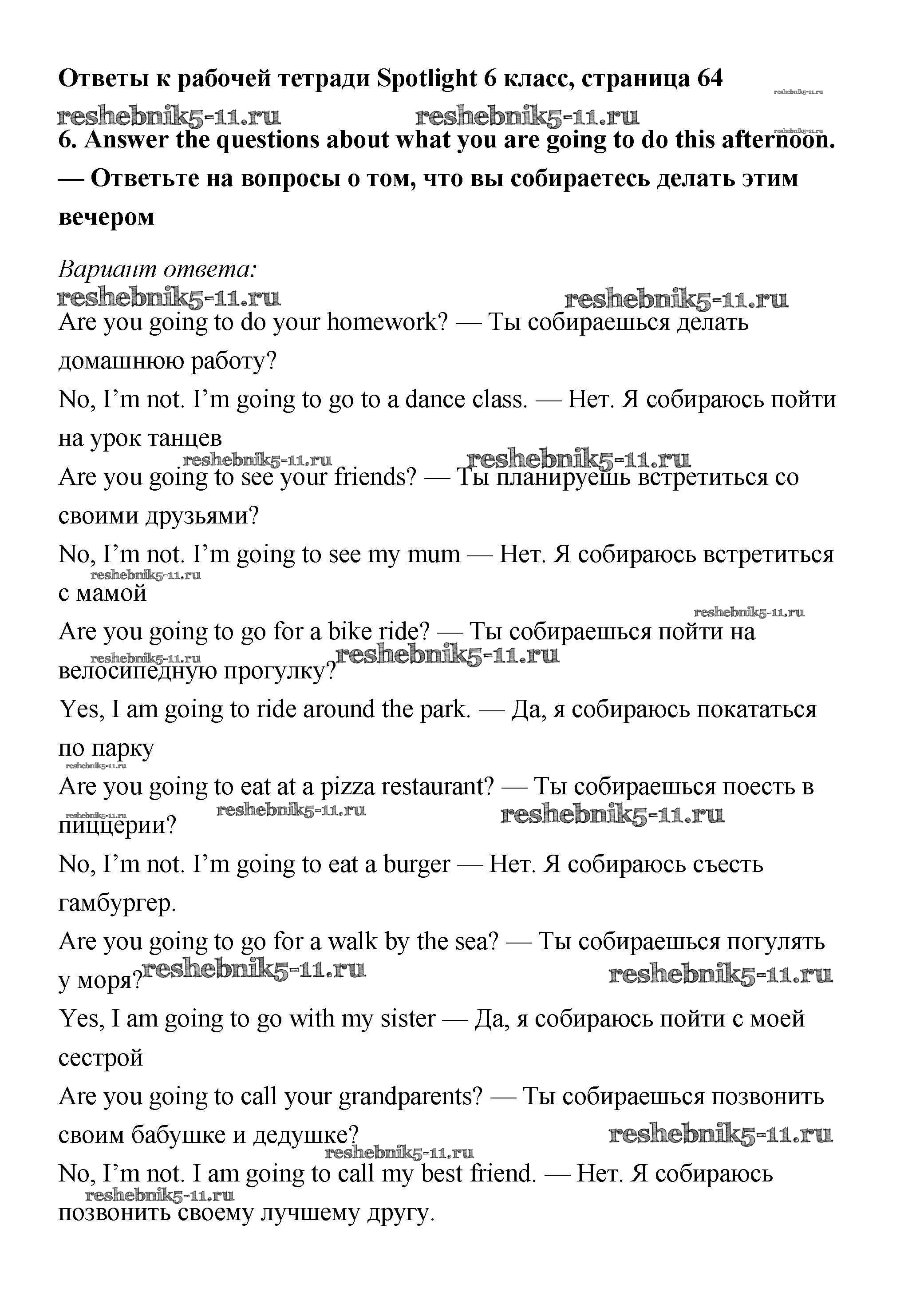 Готовая домашняя работа с ответами по Английскому языку за 6 класс Эванс, Дули, Подоляко, Ваулина Рабочая тетрадь Spotlight Просвещение 2011 - Страницы 64