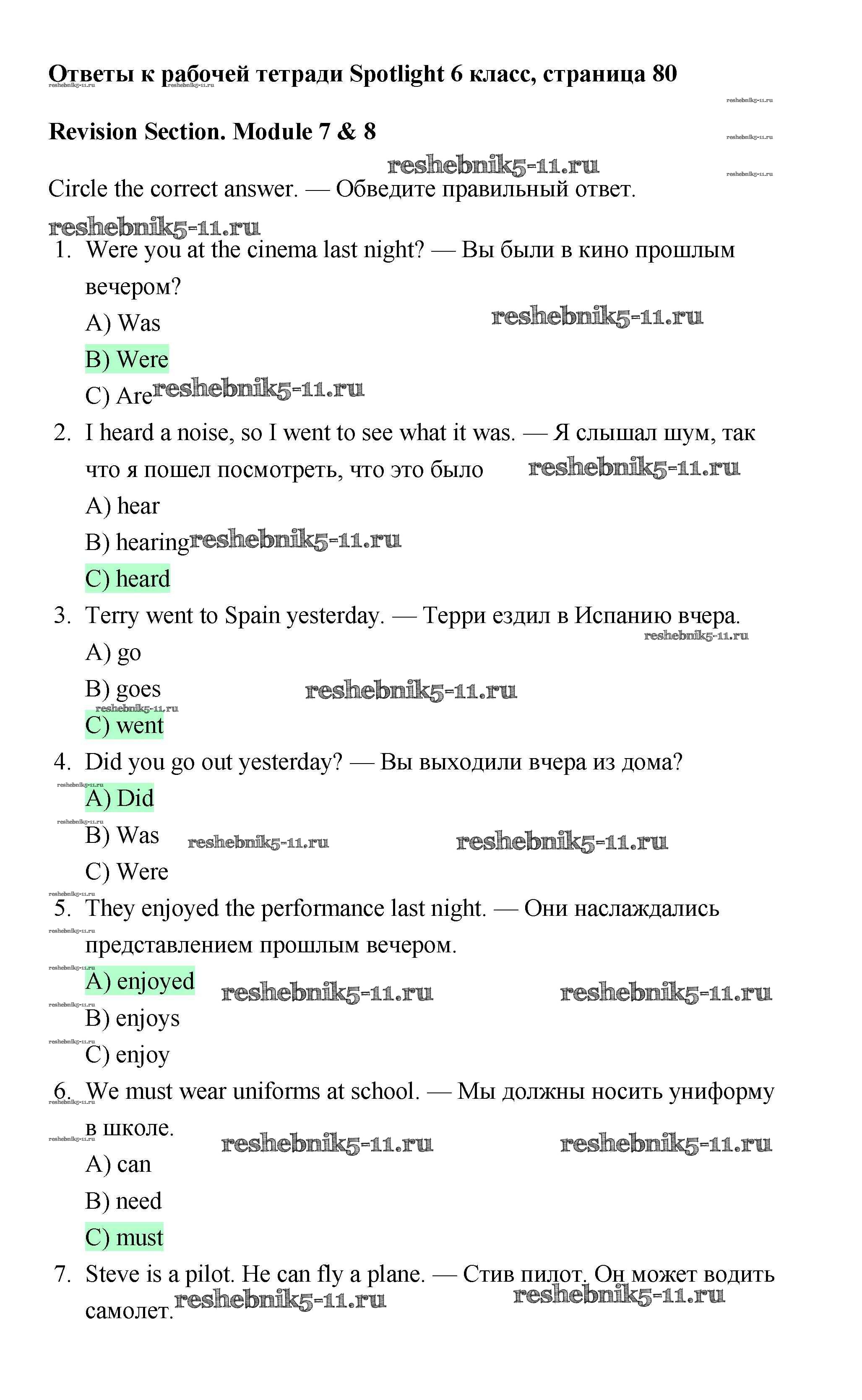 Готовая домашняя работа с ответами по Английскому языку за 6 класс Эванс, Дули, Подоляко, Ваулина Рабочая тетрадь Spotlight Просвещение 2011 - Страницы 80