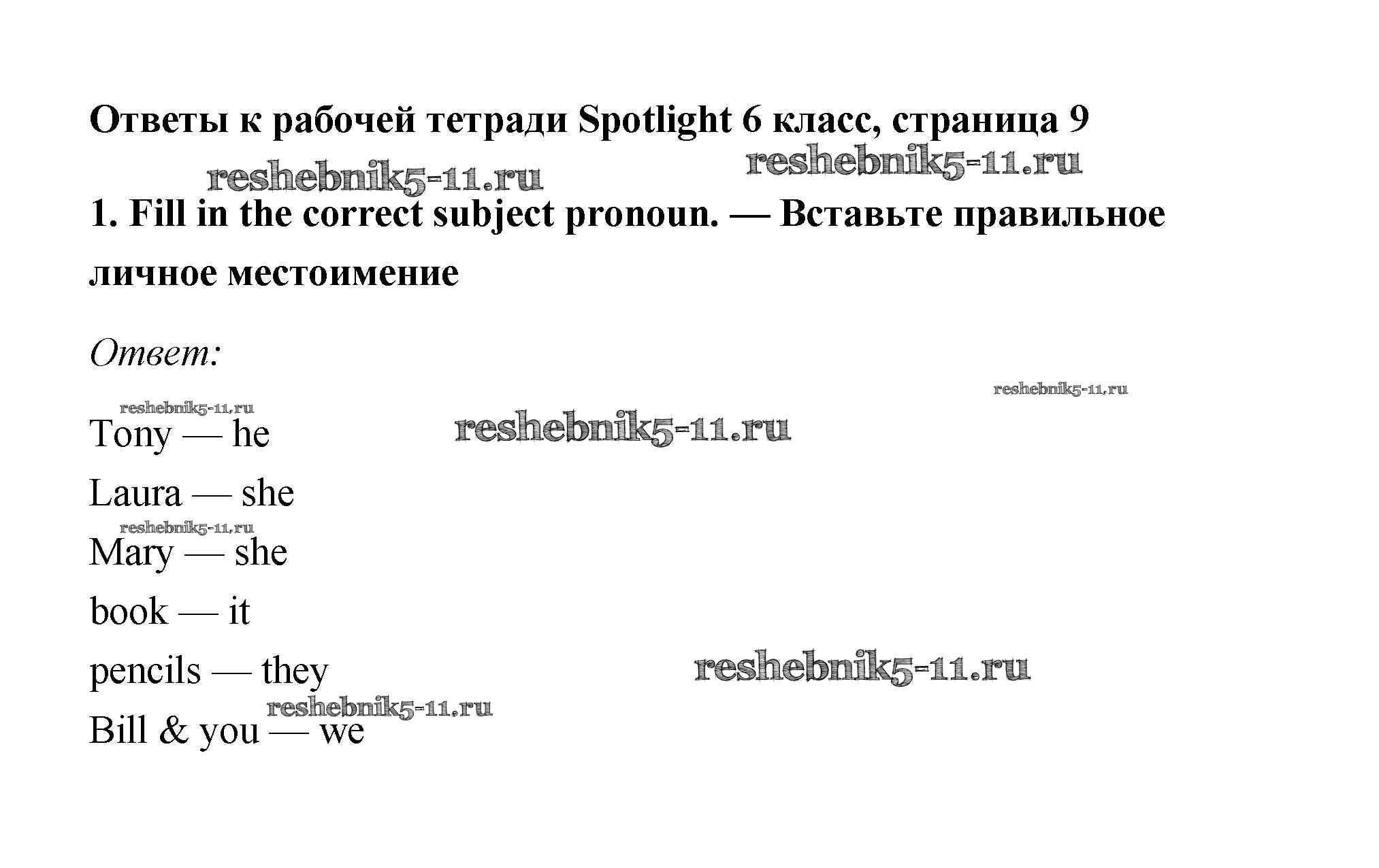 Готовая домашняя работа с ответами по Английскому языку за 6 класс Эванс, Дули, Подоляко, Ваулина Рабочая тетрадь Spotlight Просвещение 2011 - Страницы 9