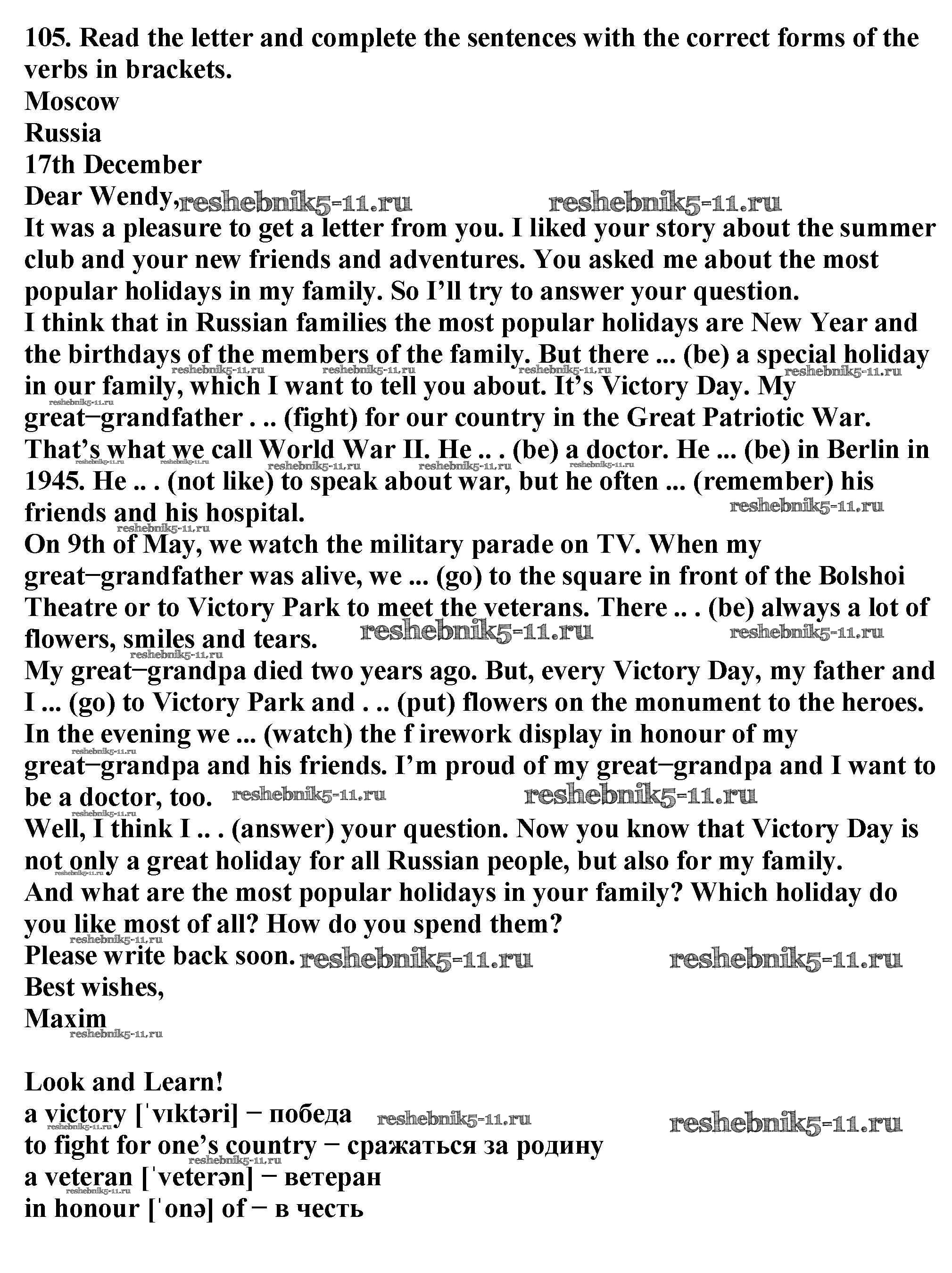 Решебник №2 / учебник 2019 / unit 1 / exercise / 105