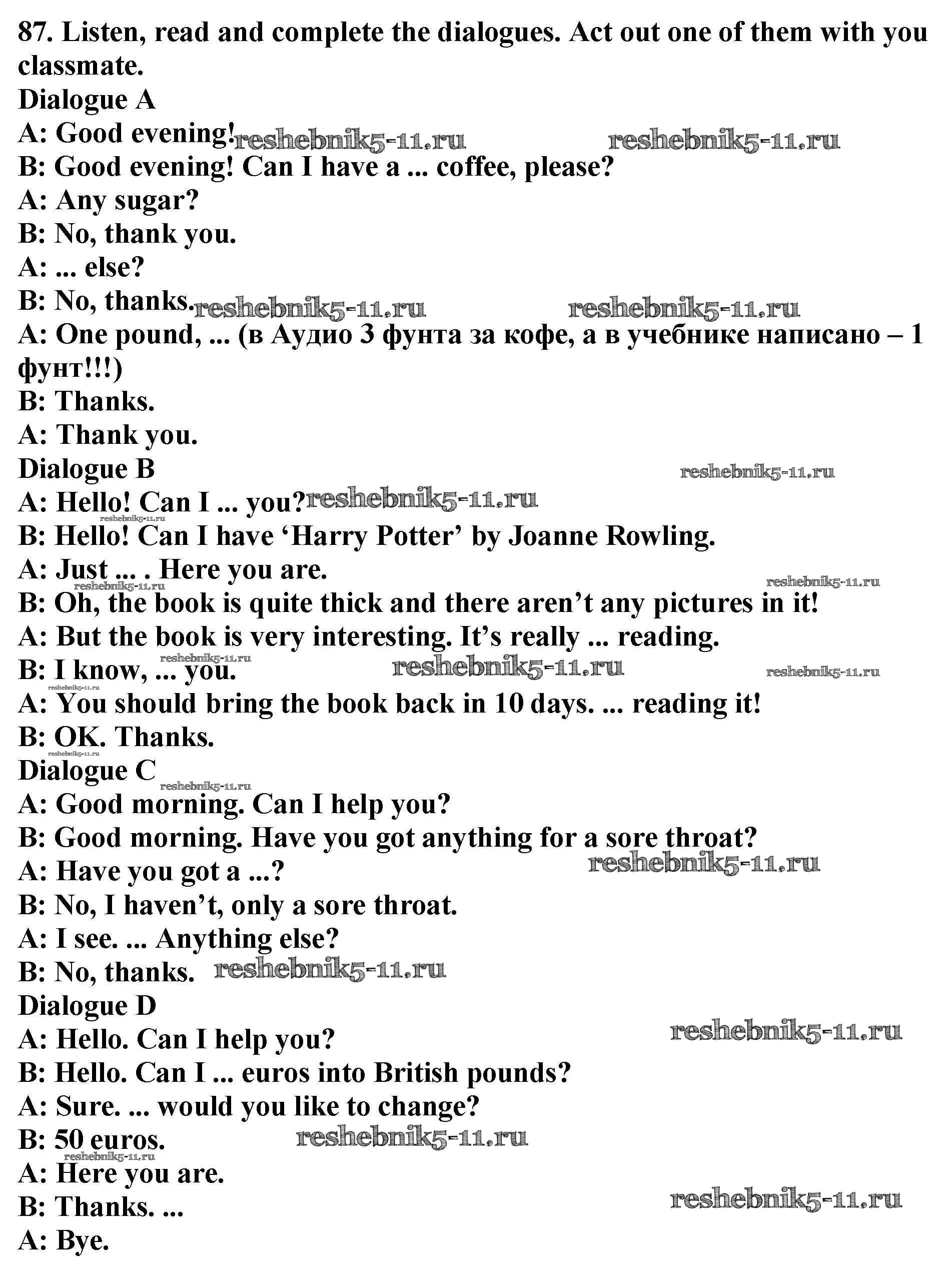 Решебник №2 / учебник 2019 / unit 1 / exercise / 87