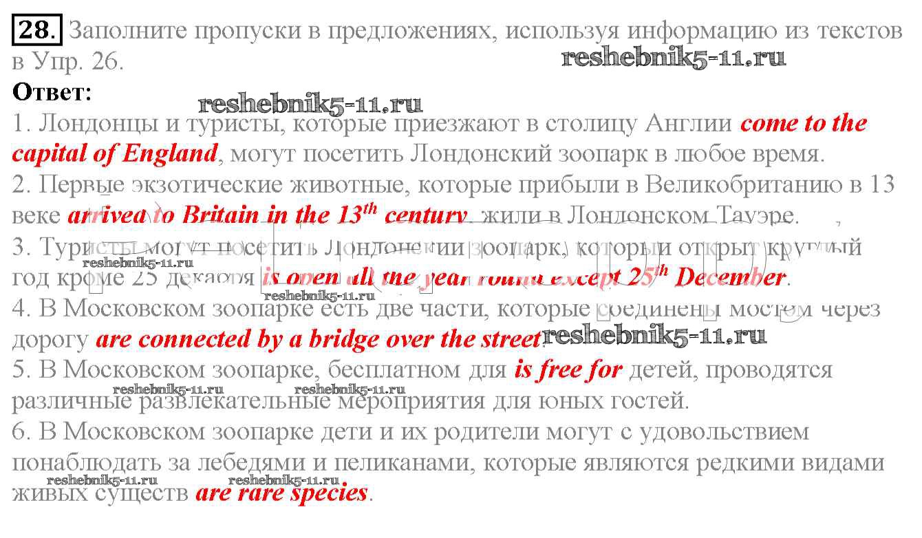 Готовая домашняя работа с ответами по Английскому языку за 6 класс Биболетова, Денисенко, Трубанева Учебник Enjoy English Титул 2015 ФГОС - Exercises 28