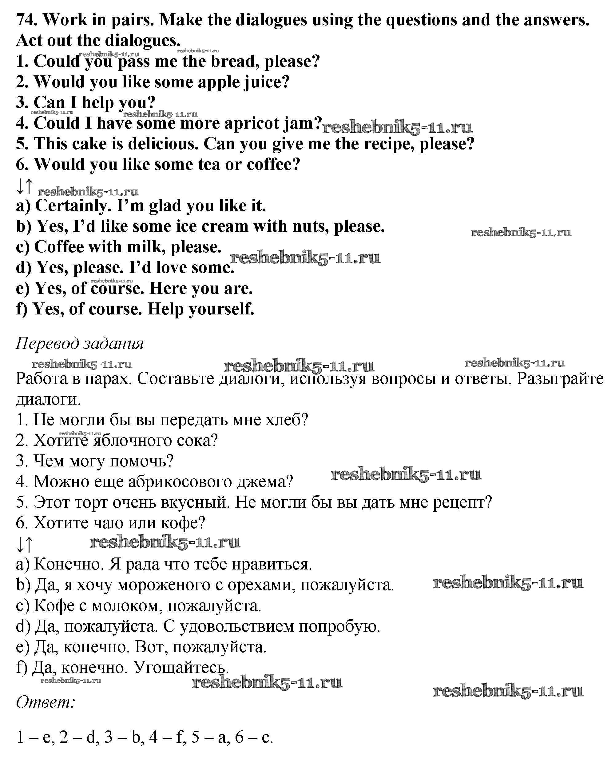 Решебник №2 / учебник 2019 / unit 2 / exercise / 74