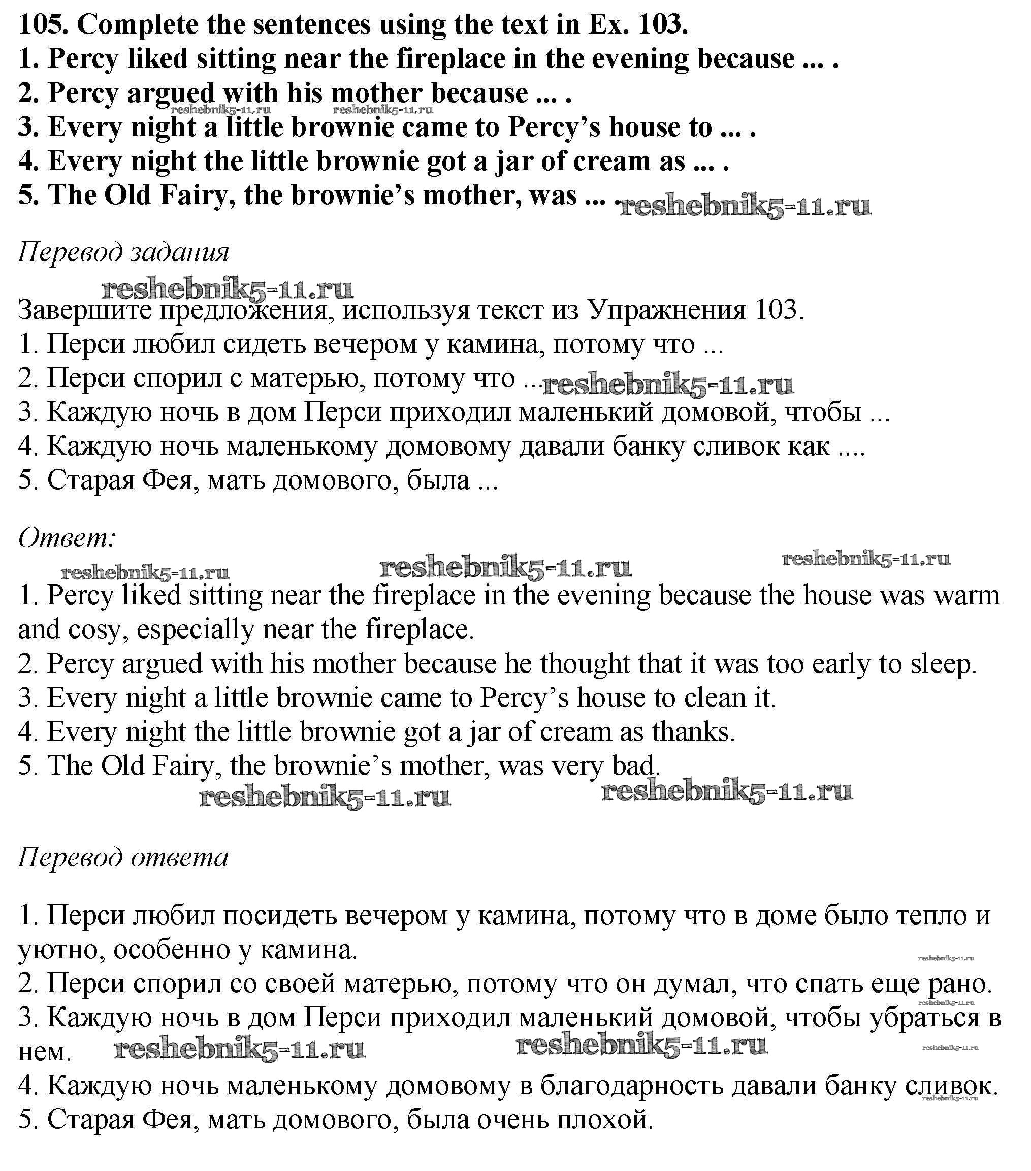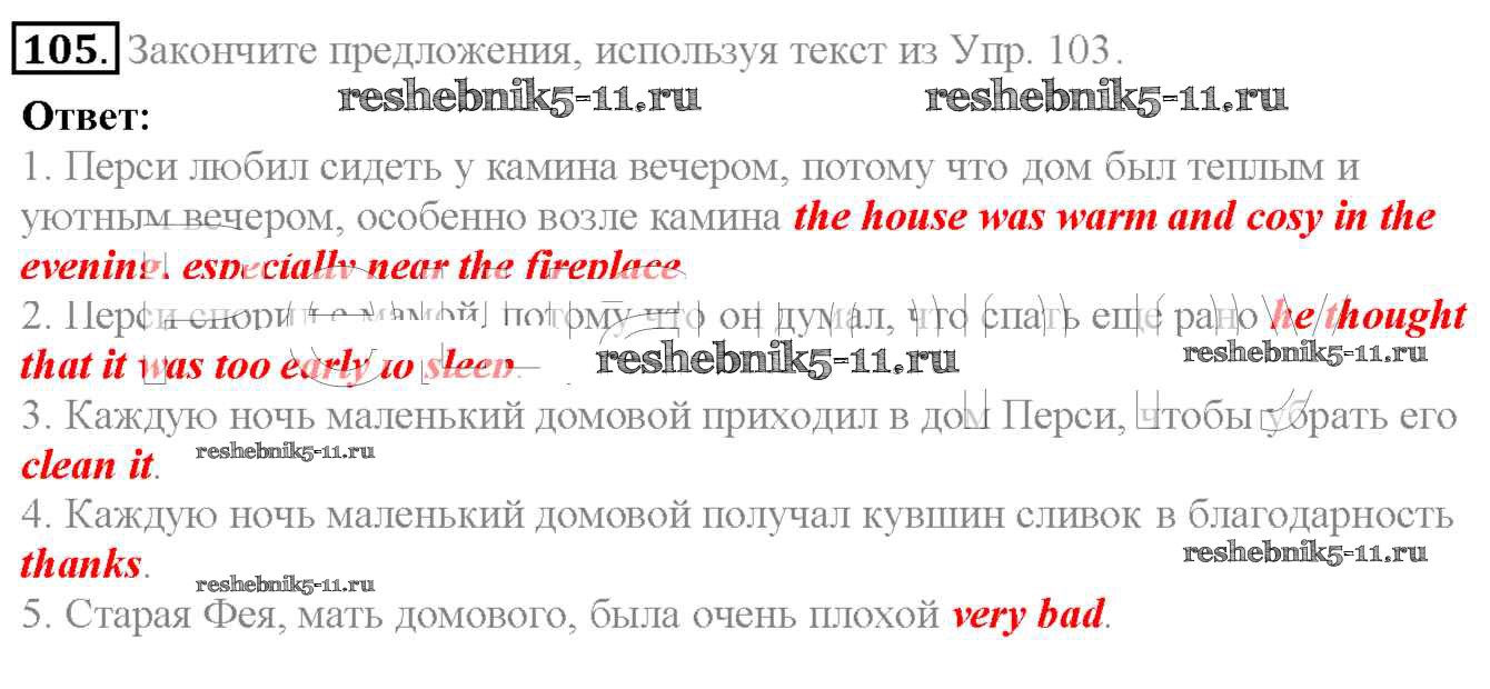 Готовая домашняя работа с ответами по Английскому языку за 6 класс Биболетова, Денисенко, Трубанева Учебник Enjoy English Титул 2015 ФГОС - Exercises 105