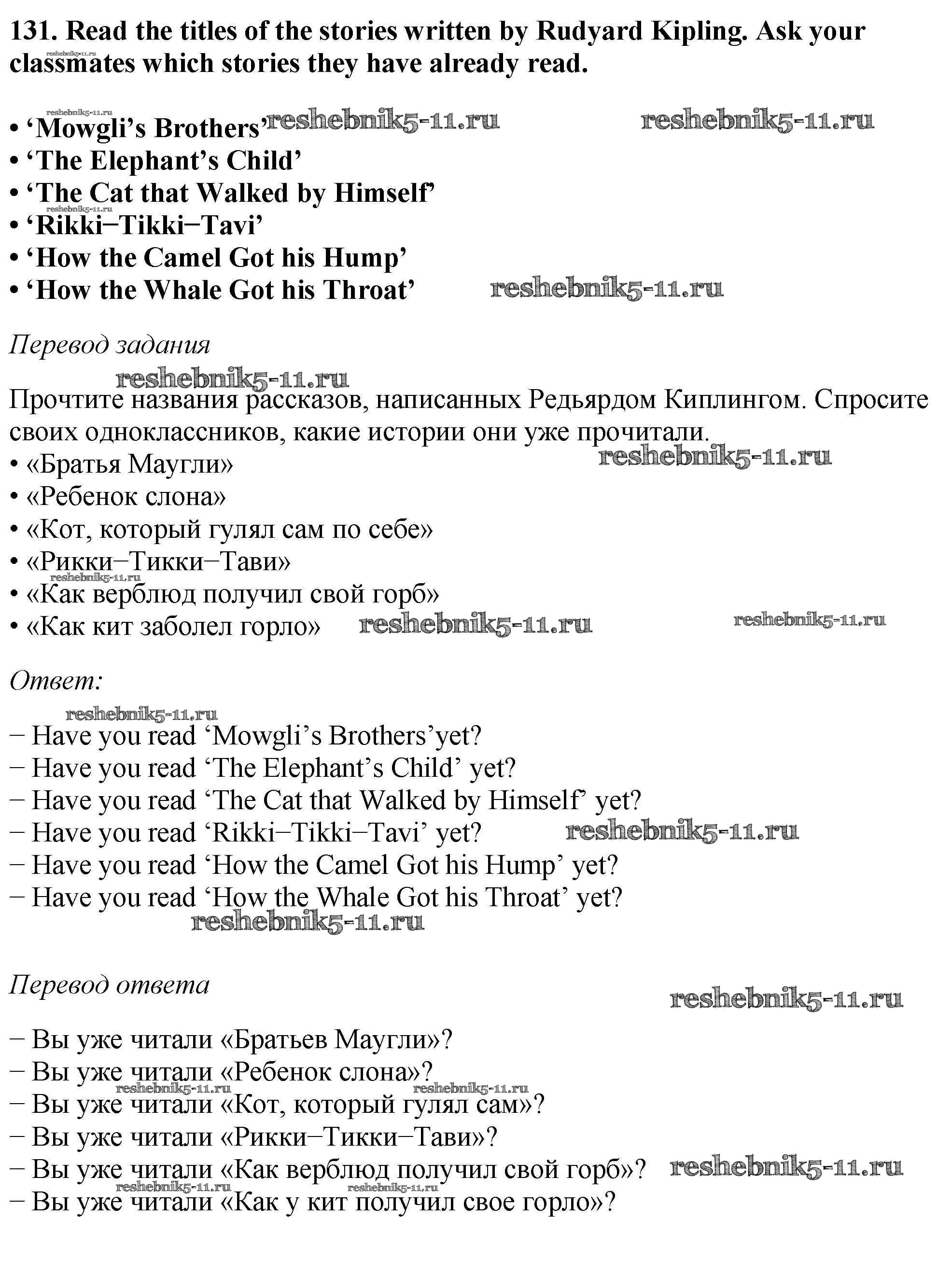Готовая домашняя работа с ответами по Английскому языку за 6 класс Биболетова, Денисенко, Трубанева Учебник Enjoy English Титул 2015 ФГОС - Exercises 131
