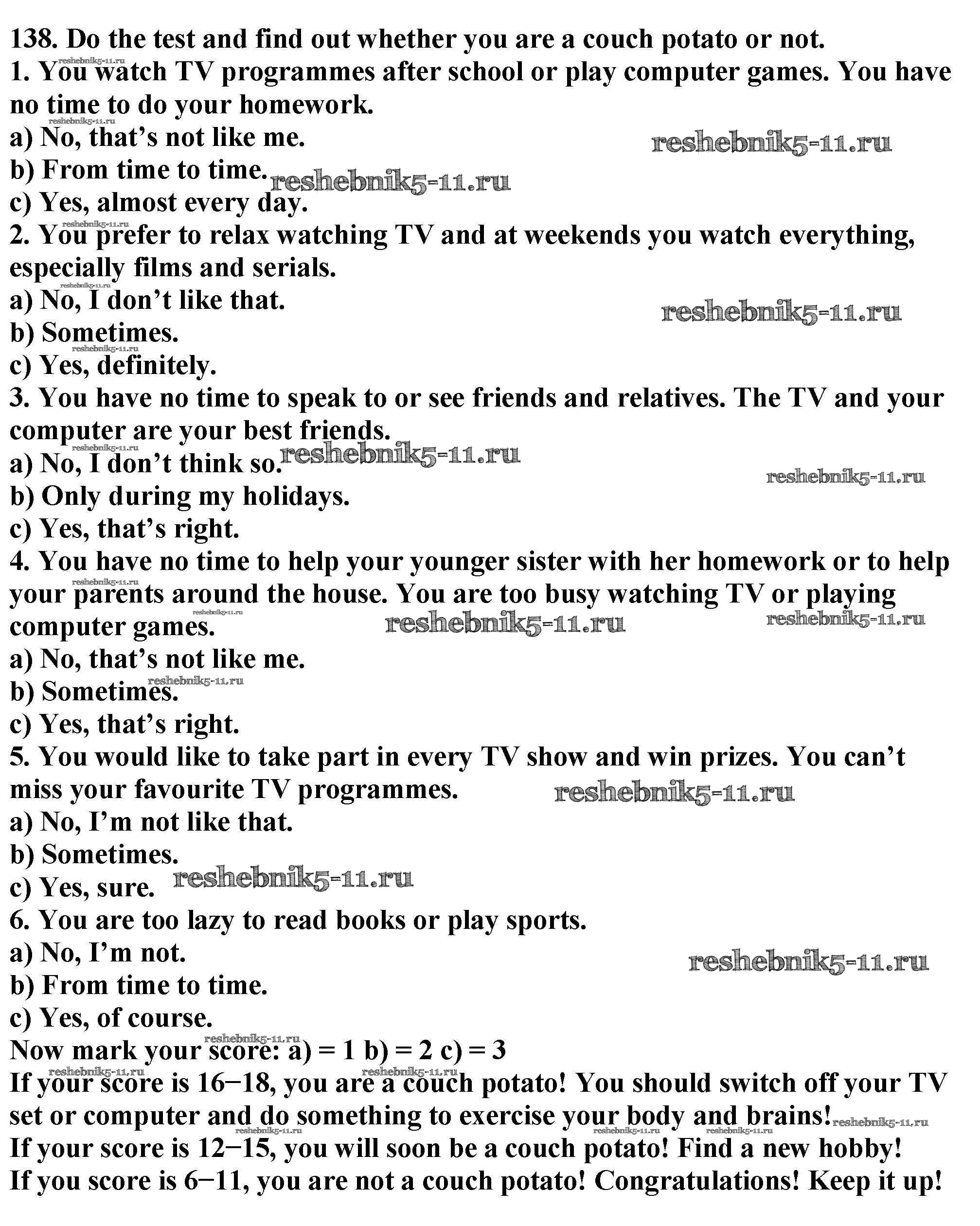 Готовая домашняя работа с ответами по Английскому языку за 6 класс Биболетова, Денисенко, Трубанева Учебник Enjoy English Титул 2015 ФГОС - Exercises 138