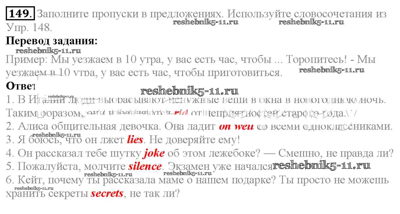 Готовая домашняя работа с ответами по Английскому языку за 6 класс Биболетова, Денисенко, Трубанева Учебник Enjoy English Титул 2015 ФГОС - Exercises 149