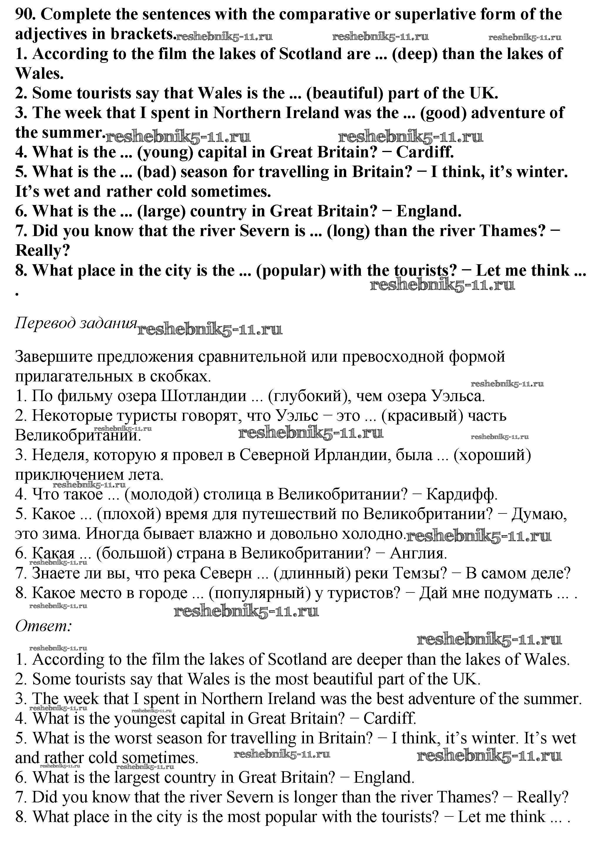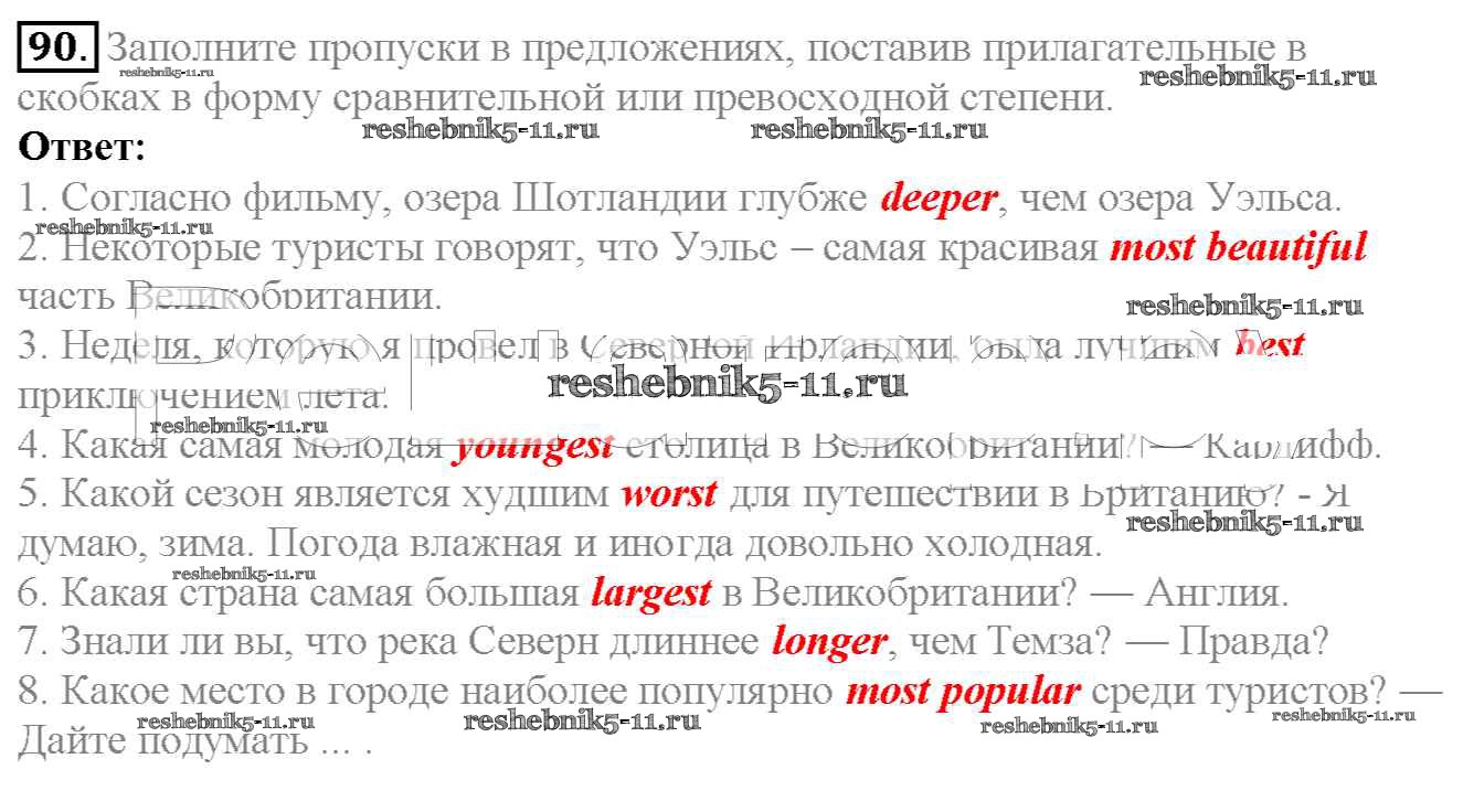 Готовая домашняя работа с ответами по Английскому языку за 6 класс Биболетова, Денисенко, Трубанева Учебник Enjoy English Титул 2015 ФГОС - Exercises 90