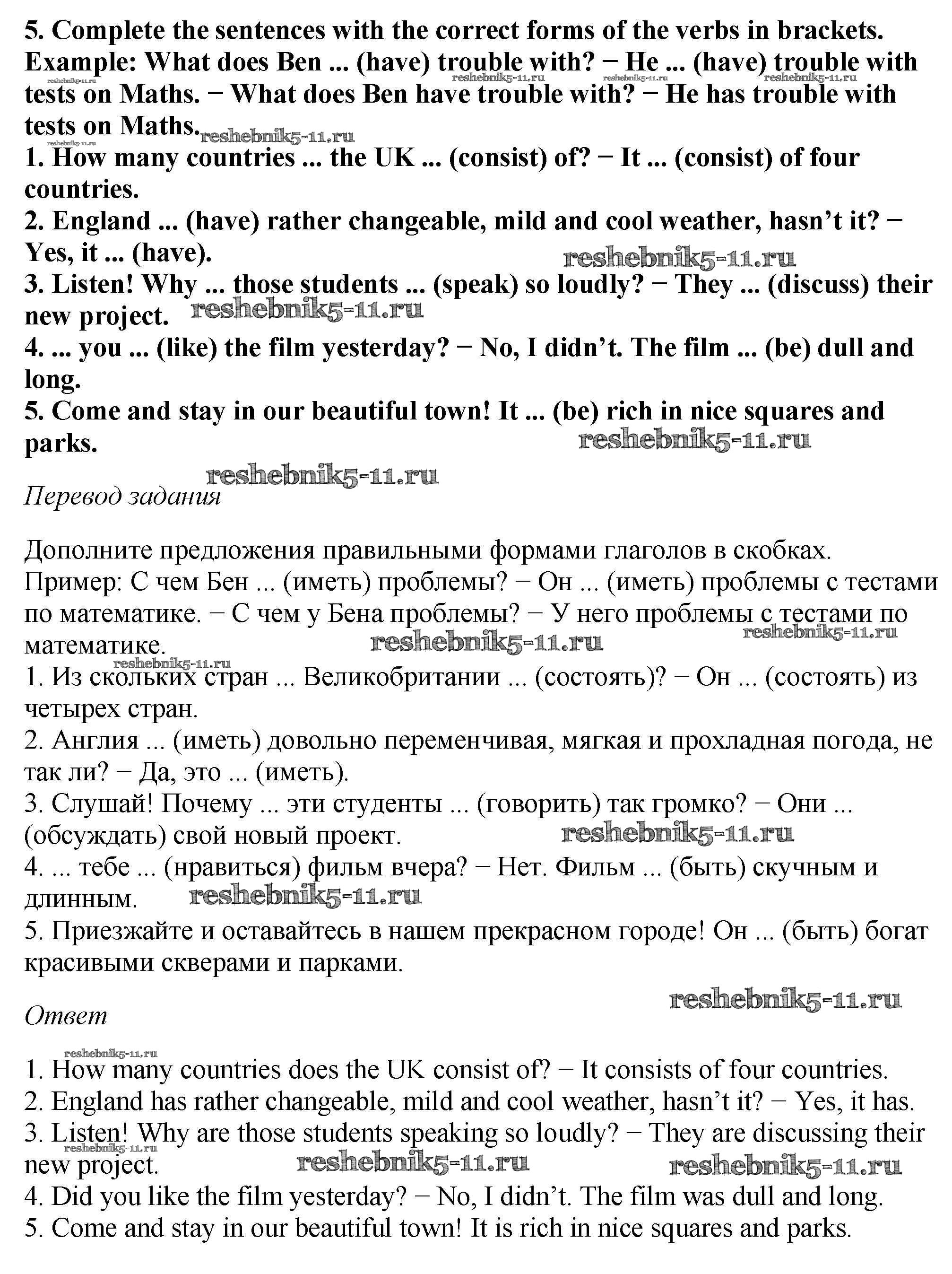 Решебник №1 / учебник 2019 / unit 3 / homework / 5