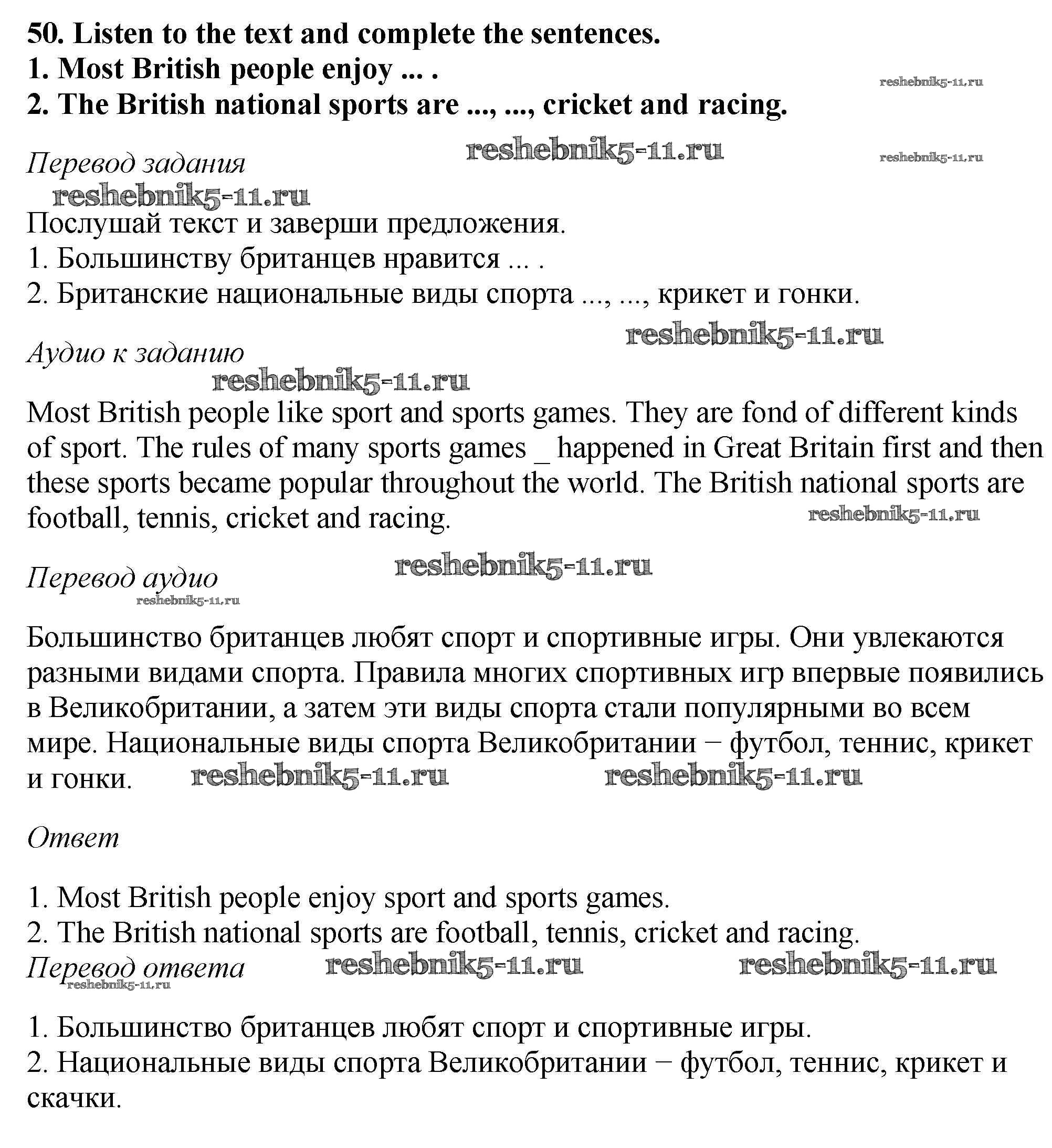 Решебник №2 / учебник 2019 / unit 4 / exercise / 50