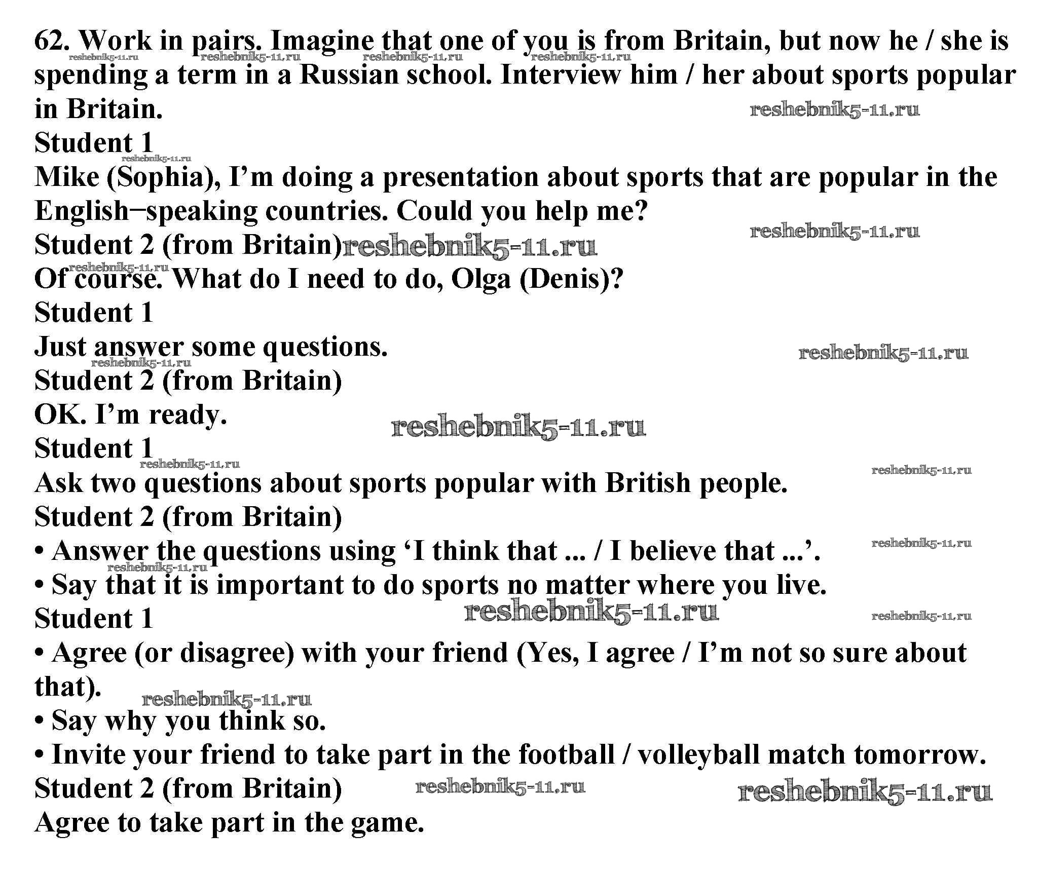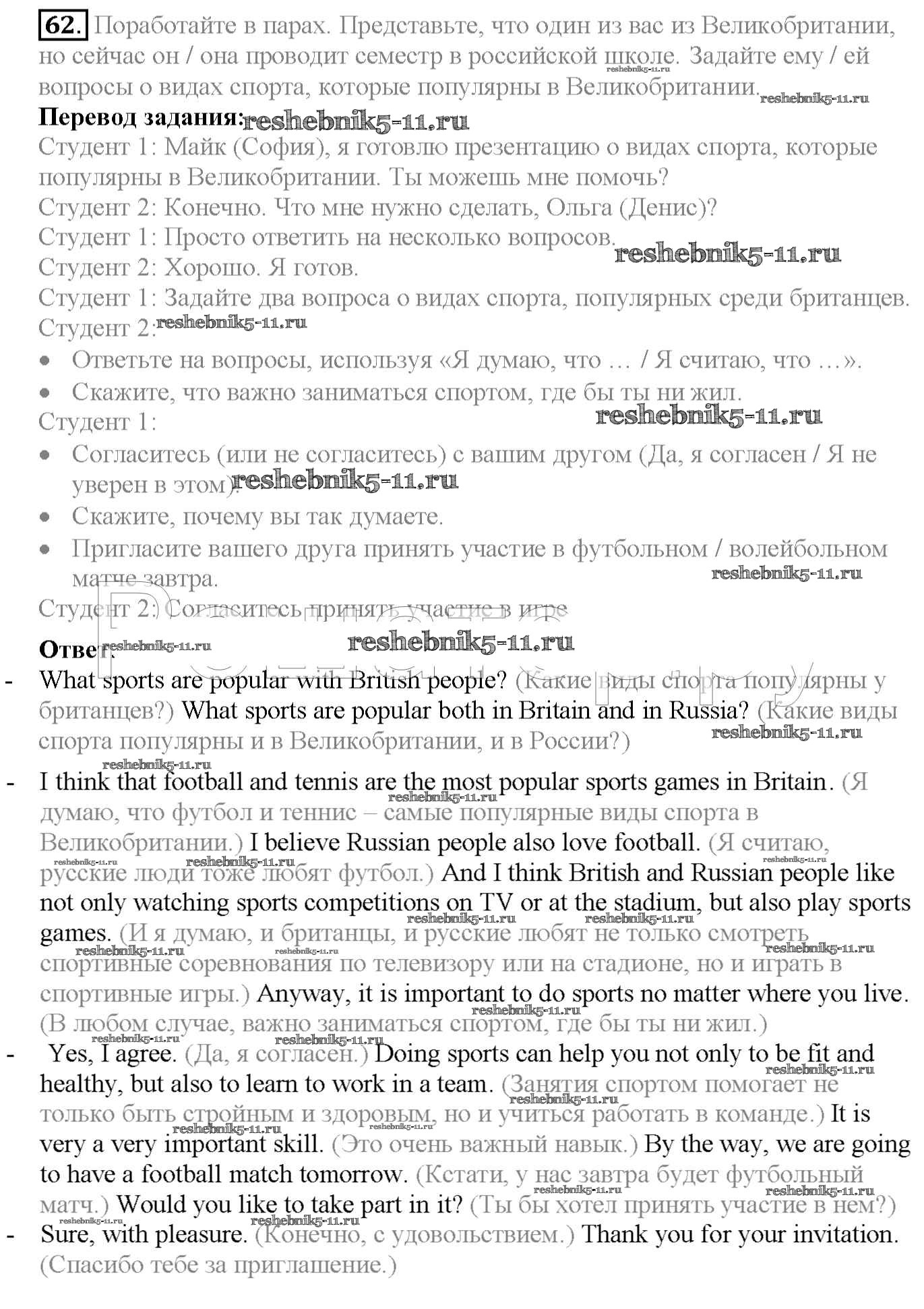 Решебник №2 / учебник 2019 / unit 4 / exercise / 62