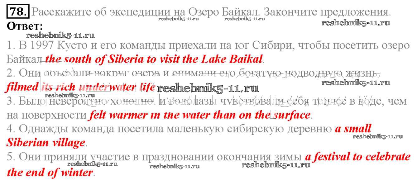 Готовая домашняя работа с ответами по Английскому языку за 6 класс Биболетова, Денисенко, Трубанева Учебник Enjoy English Титул 2015 ФГОС - Exercises 78