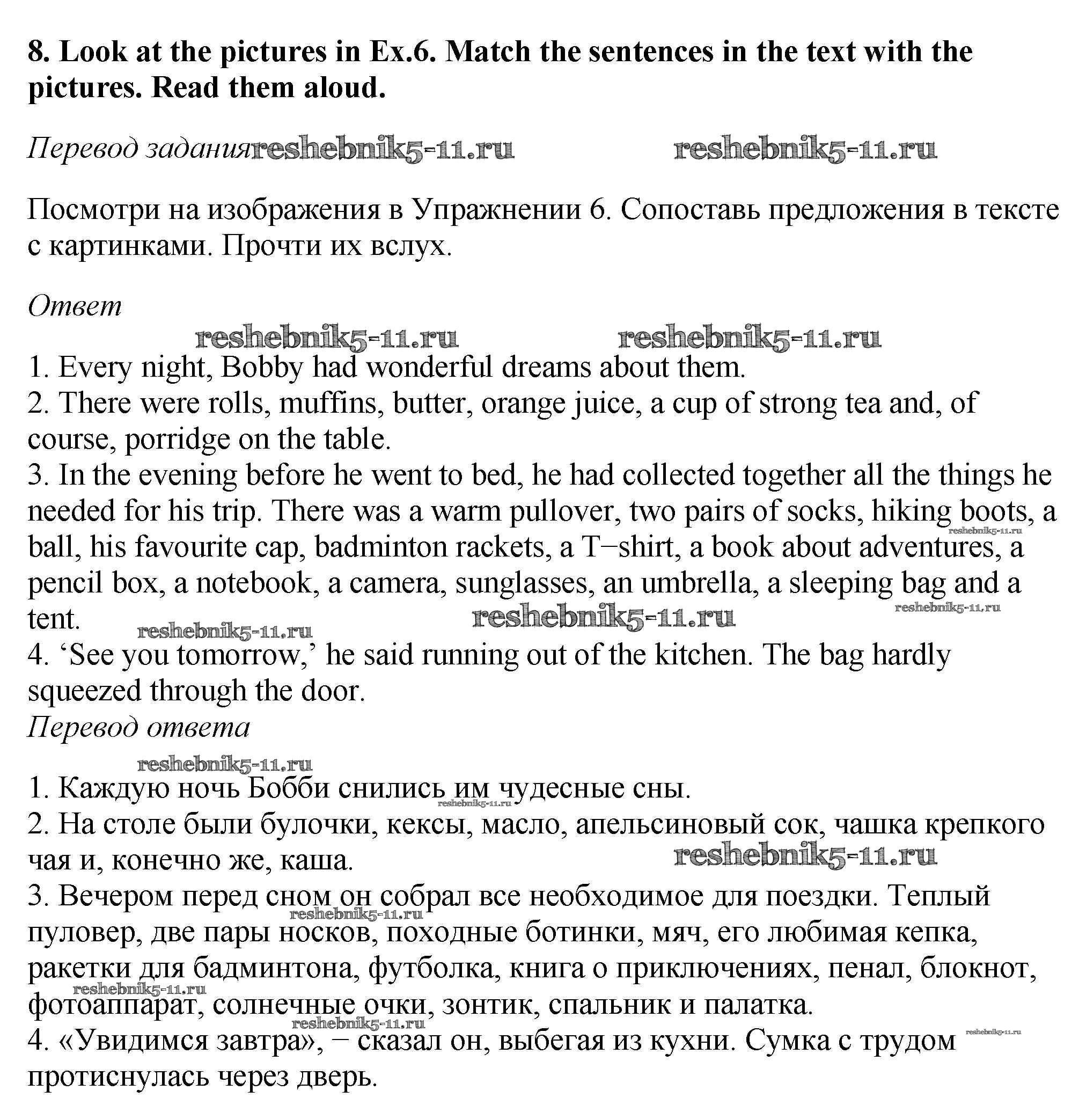 Готовая домашняя работа с ответами по Английскому языку за 6 класс Биболетова, Денисенко, Трубанева Учебник Enjoy English Титул 2015 ФГОС - Exercises 8