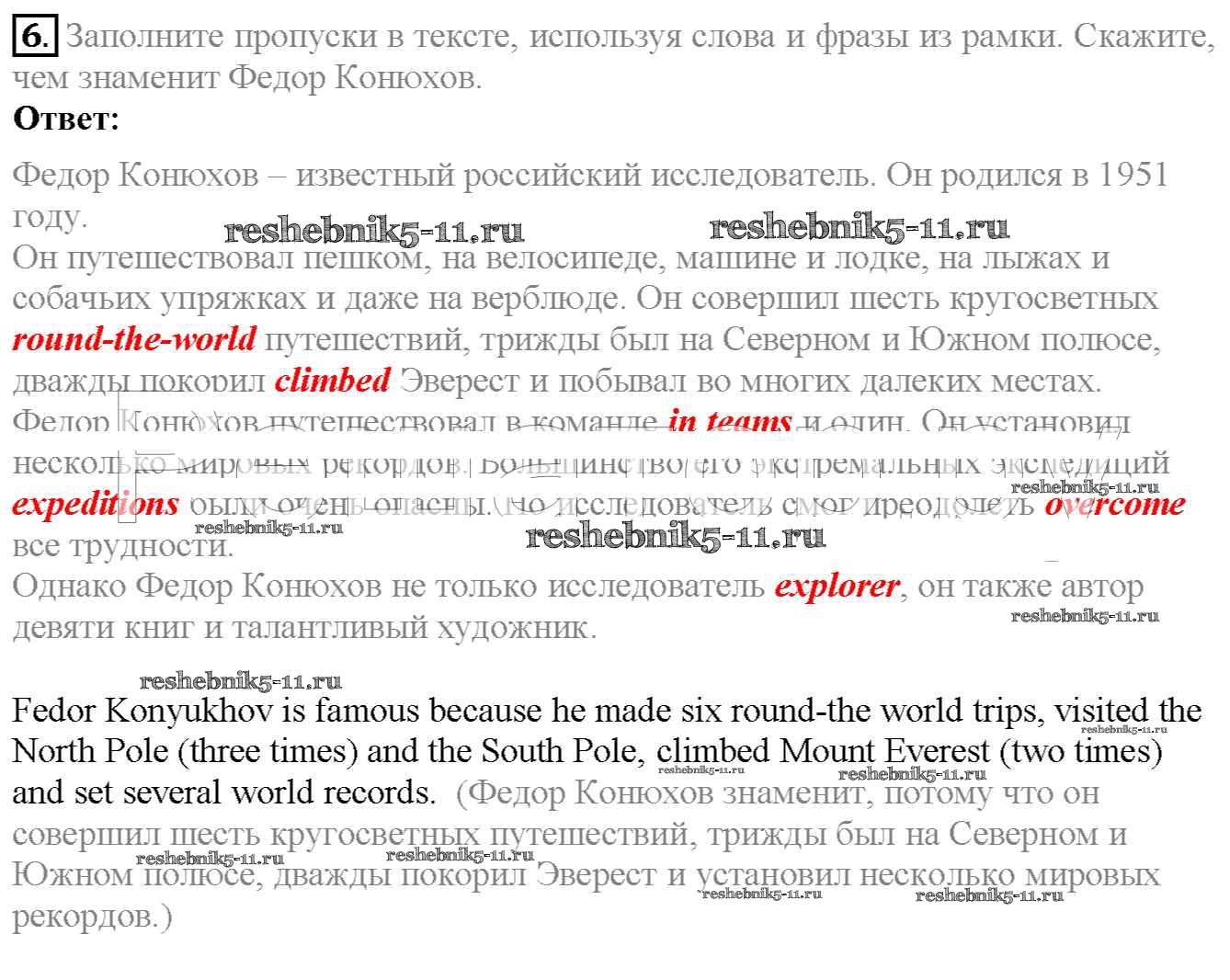 Готовая домашняя работа с ответами по Английскому языку за 6 класс Биболетова, Денисенко, Трубанева Учебник Enjoy English Титул 2015 ФГОС - Homework 6