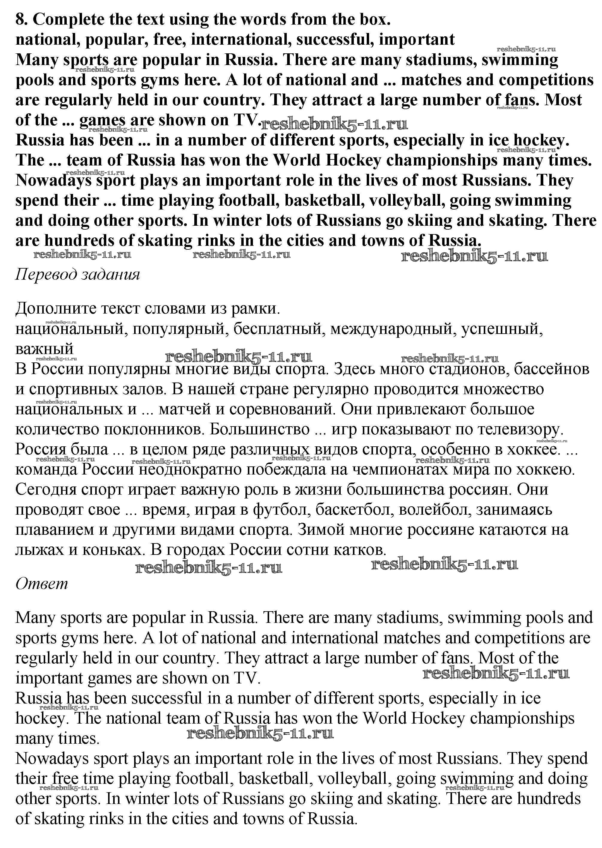 Решебник №2 / учебник 2019 / unit 4 / homework / 8