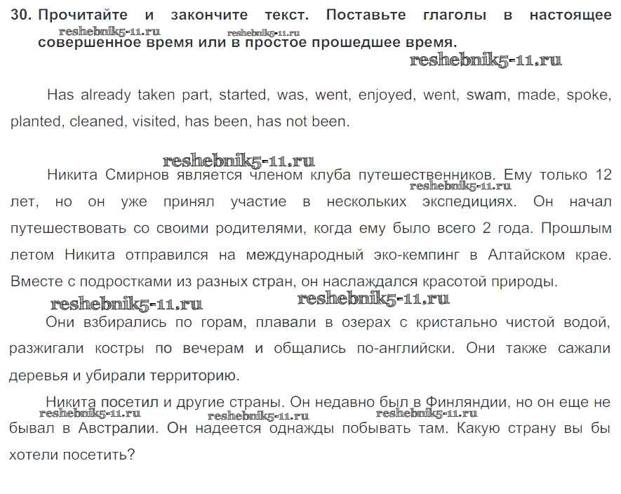 Готовая домашняя работа с ответами по Английскому языку за 6 класс Биболетова, Денисенко, Трубанева Учебник Enjoy English Титул 2015 ФГОС - Exercises 30