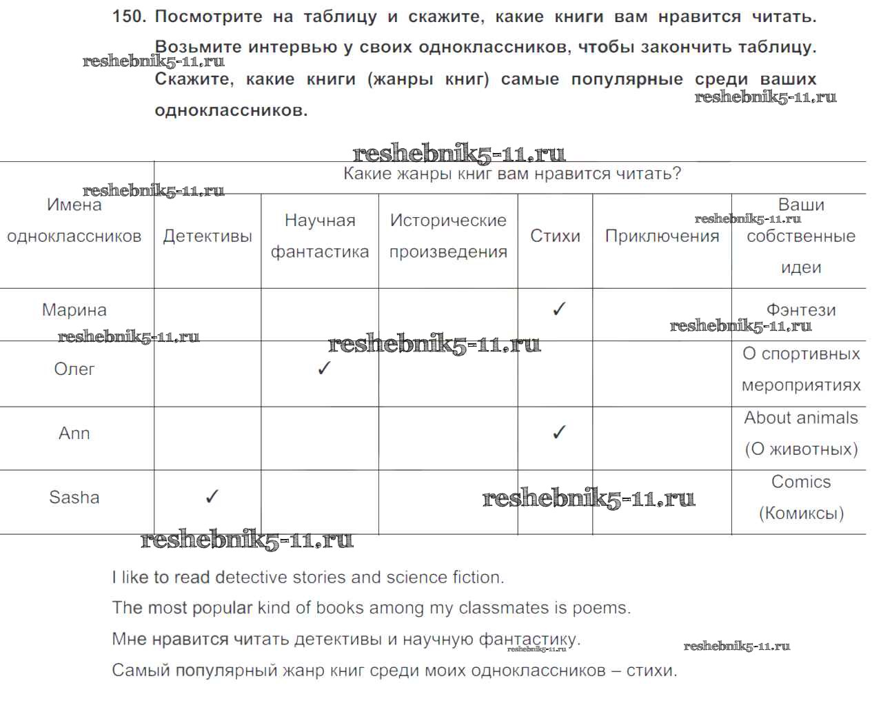 Готовая домашняя работа с ответами по Английскому языку за 6 класс Биболетова, Денисенко, Трубанева Учебник Enjoy English Титул 2015 ФГОС - Exercises 150