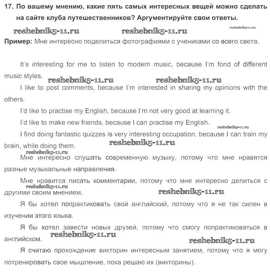 Готовая домашняя работа с ответами по Английскому языку за 6 класс Биболетова, Денисенко, Трубанева Учебник Enjoy English Титул 2015 ФГОС - Exercises 17